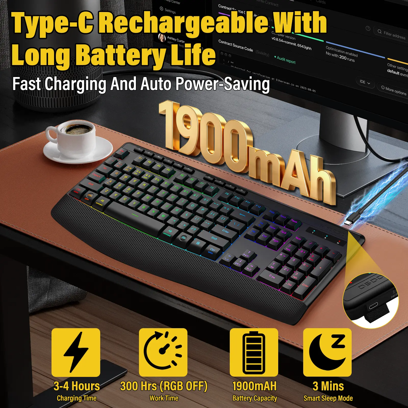 【Whisper-Quiet & Ergonomic】 Features 95% Noise Reduction keys. Enjoy a "Soft Touch" typing experience that won't disturb your family or coworkers. The Integrated Palm Rest and Foldable Legs ensure your wrists stay pain-free even after 8+ hours of use.