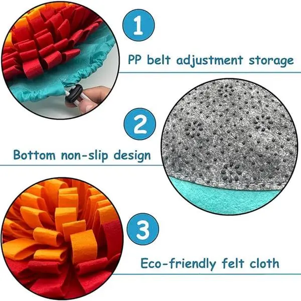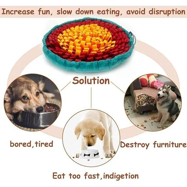 This unique mat helps your dog find hidden snacks or toys. It trains your dog's smell, consumes energy, and aids in weight loss. Keep your dog engaged and avoid boredom or destructive behavior. Perfect for indoor and outdoor use.