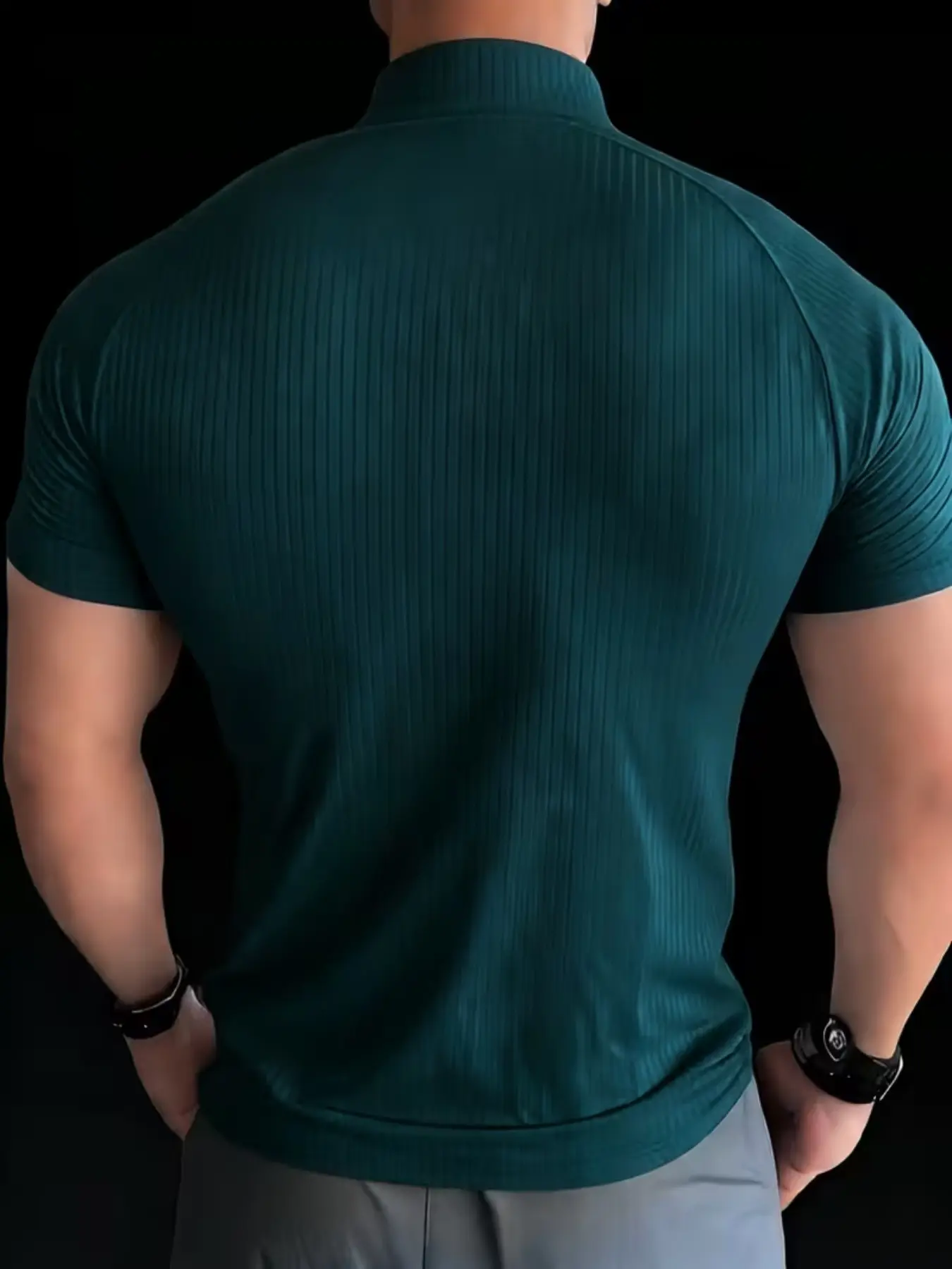 【Elastic Ribbing】: Incorporates elastic ribbing for a snug fit and enhanced muscle display.