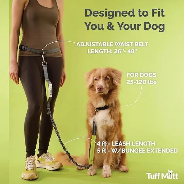 Built with a shock-absorbing bungee system that stretches 4 to 5 feet. It cushions sudden pulls when your dog spots a squirrel or investigates a scent. The bungee transfers control to your core, reducing strain on your back and shoulders. Ideal for running or hiking with an energetic pup.