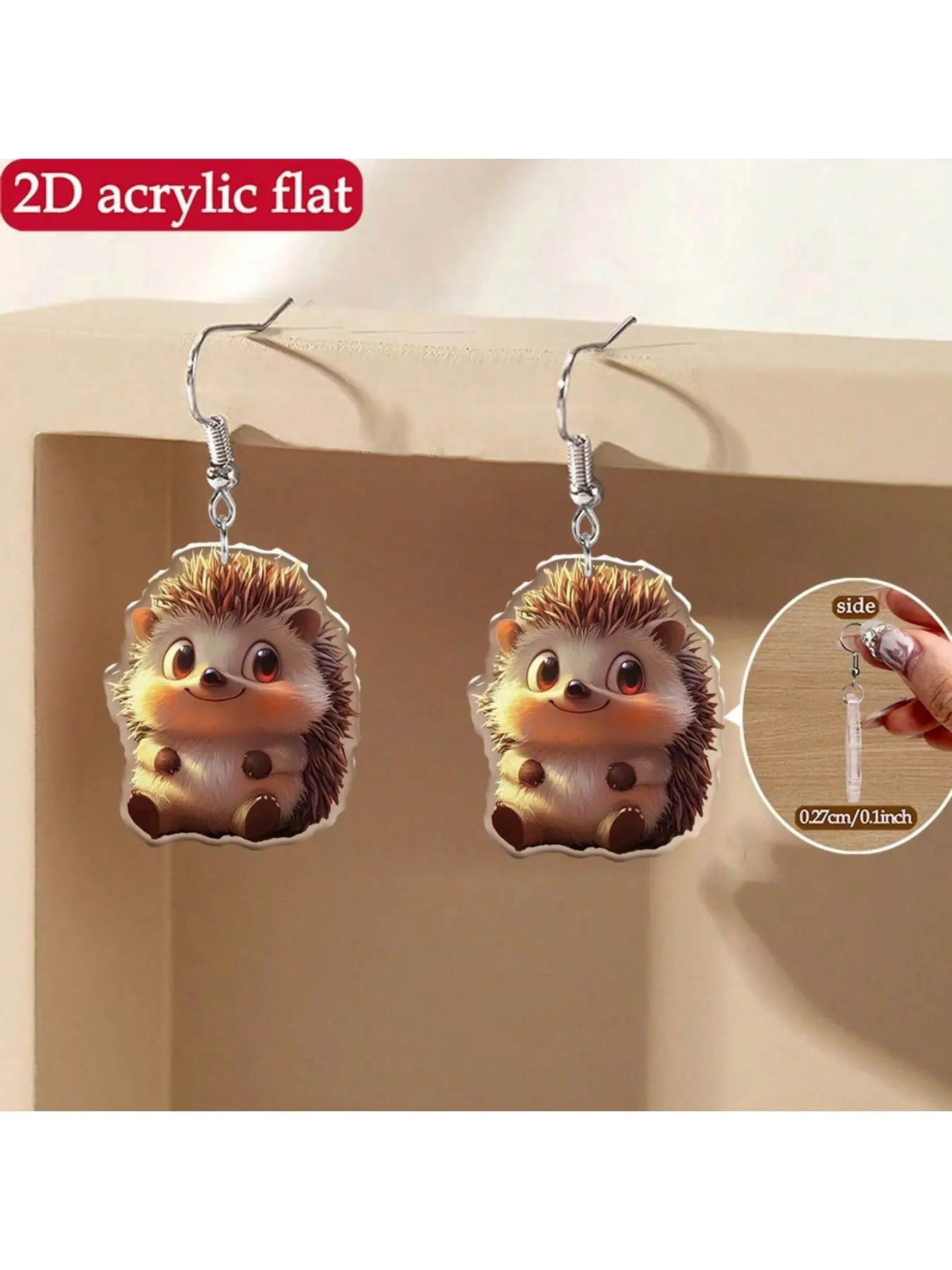 acrylic material, cute printed hedgehog design women's earrings - the perfect gift for art enthusiasts, suitable for Christmas and Thanksgiving celebrations