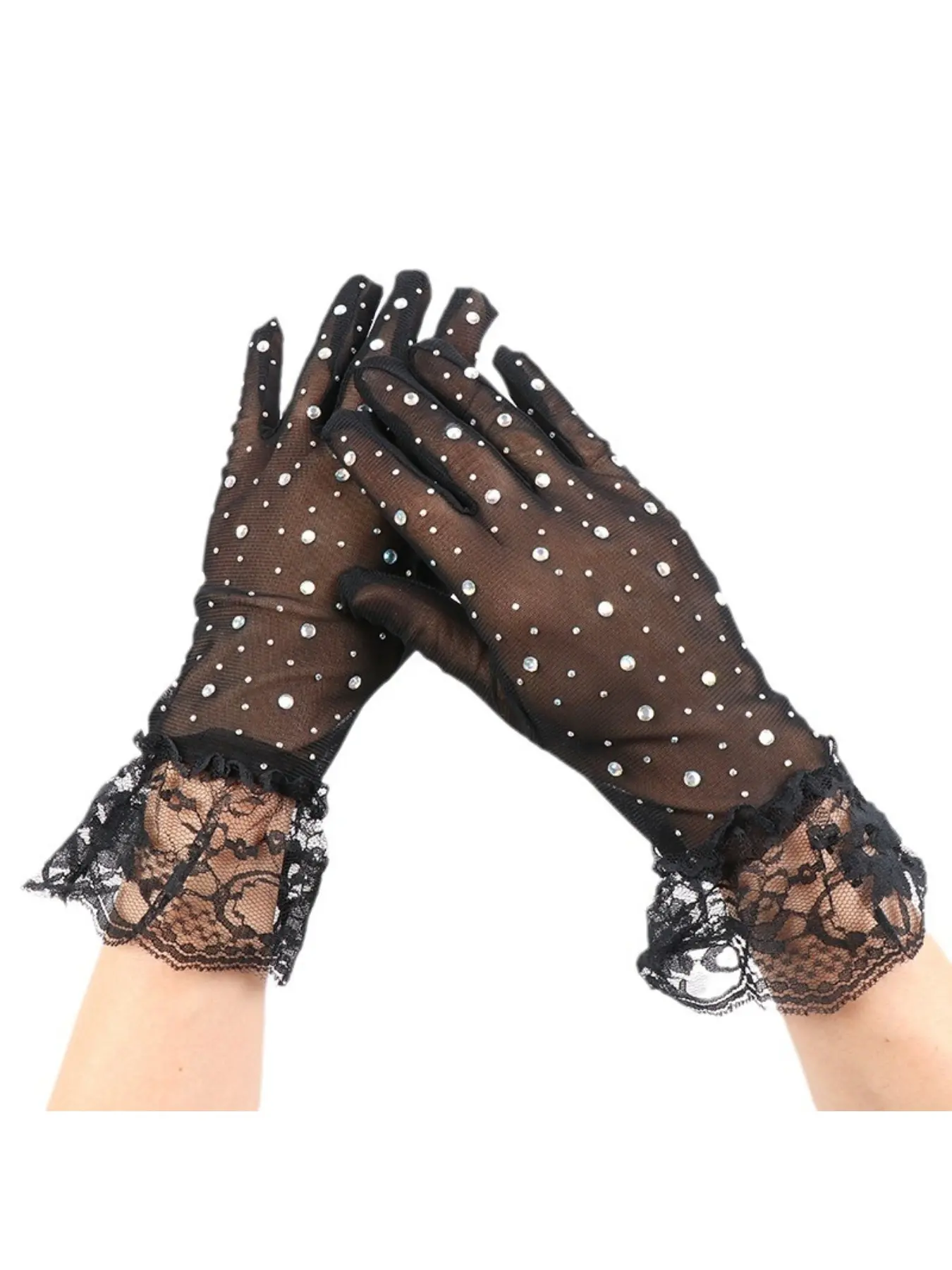 5. 1pc mesh gloves diamond set five-finger hand socks elegant vintage fashion lace lace / suitable for wedding party and other occasions