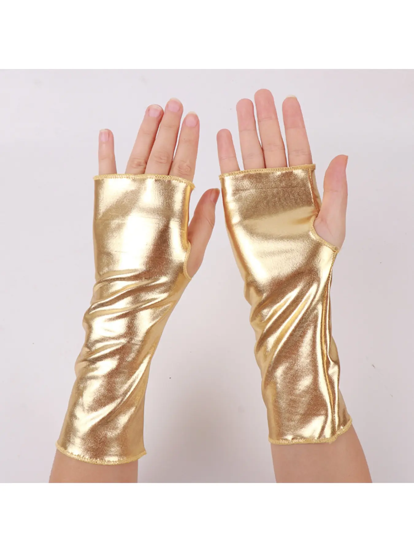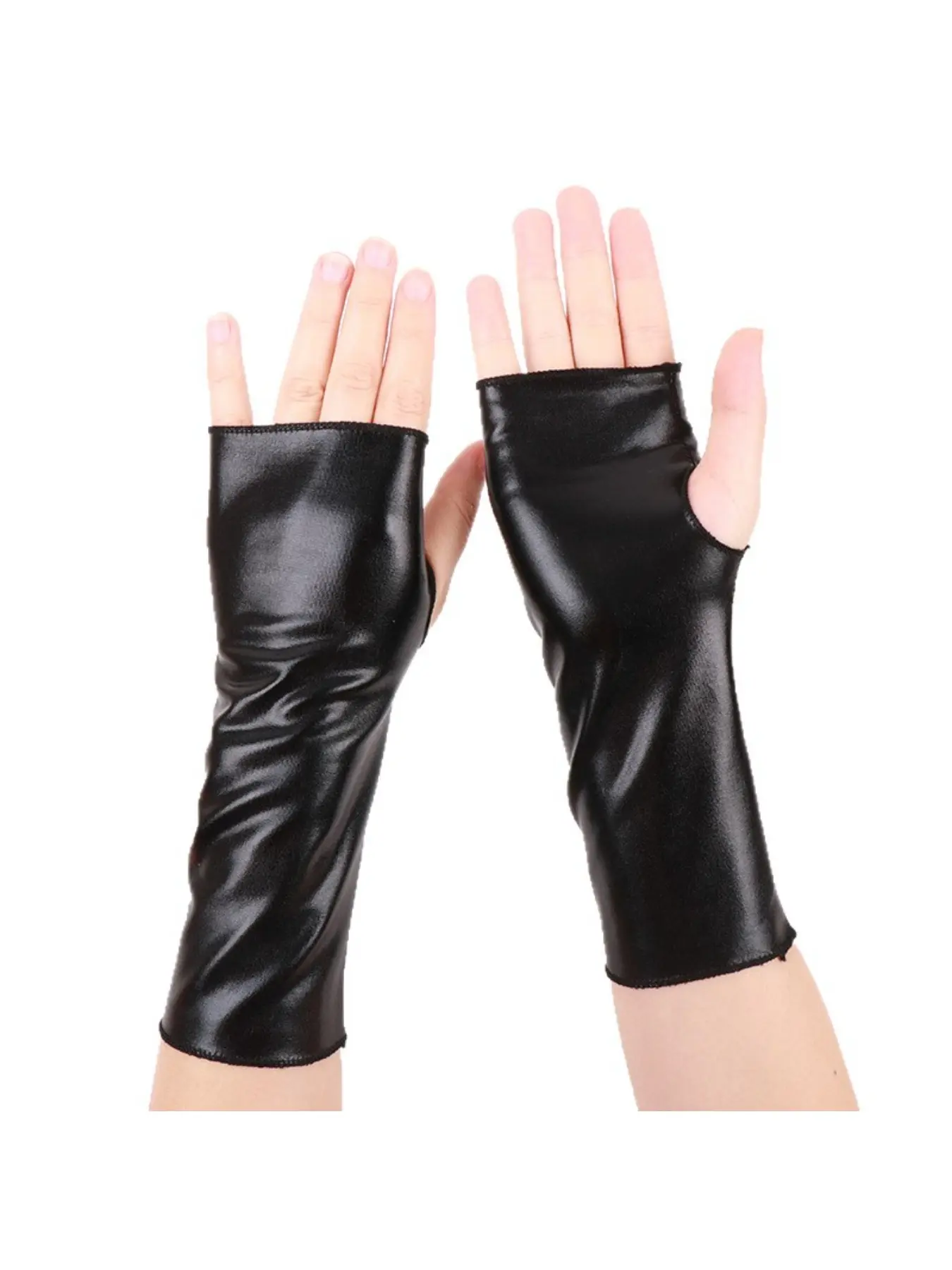 5. 1pc Fingerless Patent Leather Black Short Gloves Halloween Decorative Gloves Punk Style Hip Hop Faux Leather Stage Performance Gloves