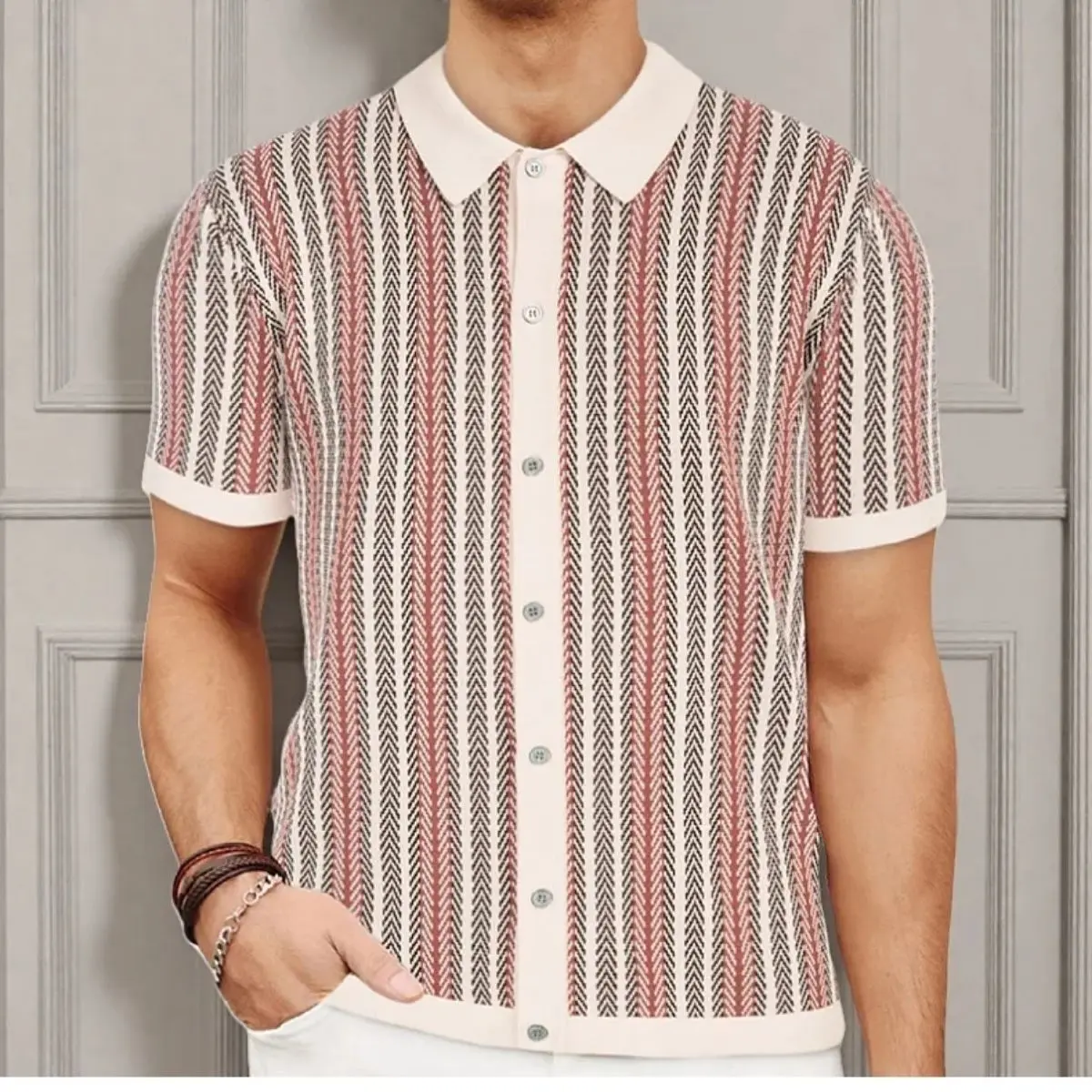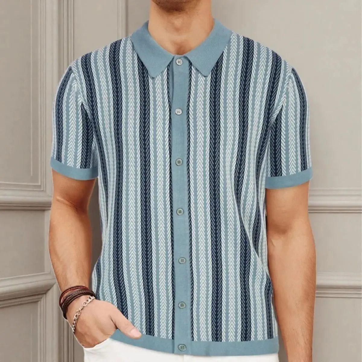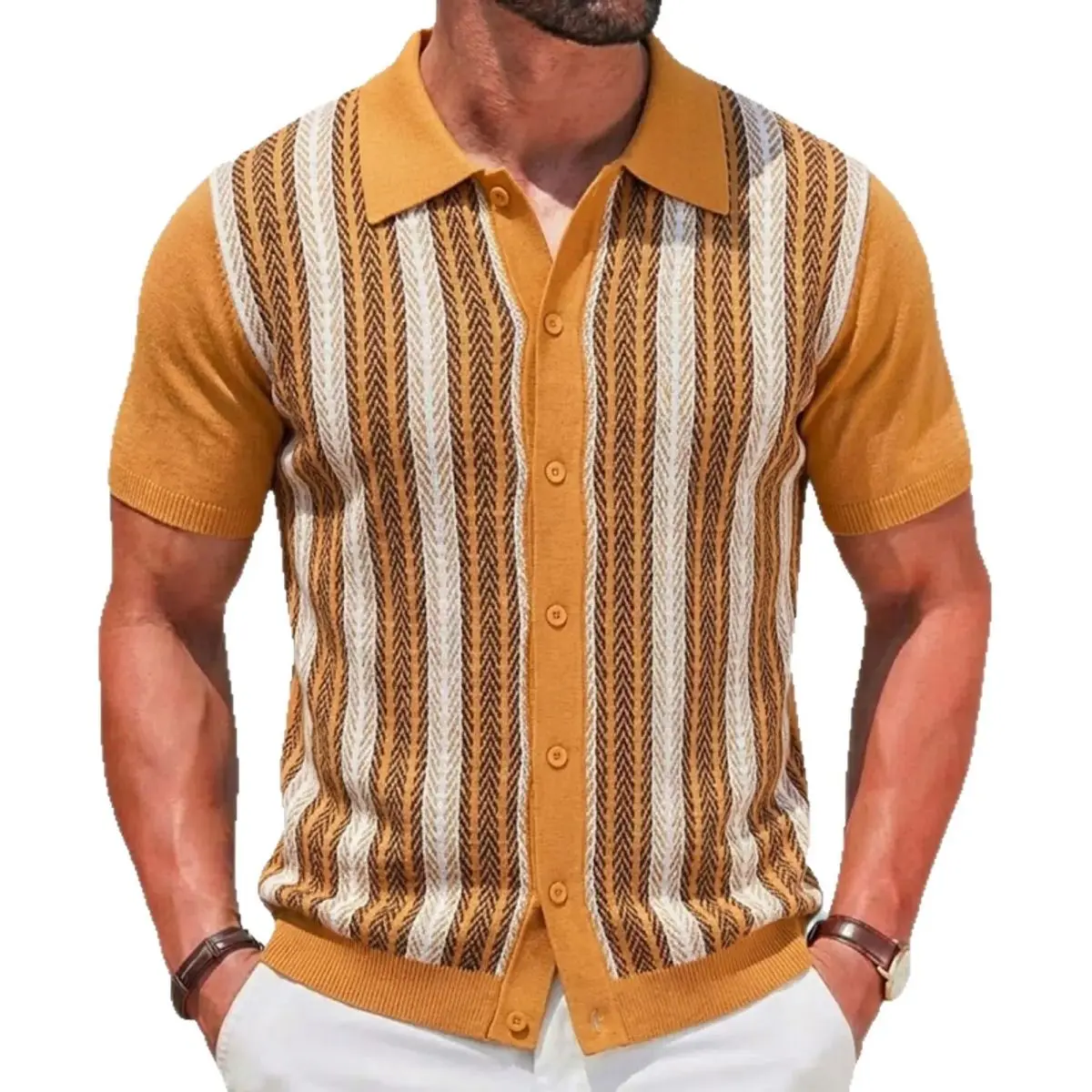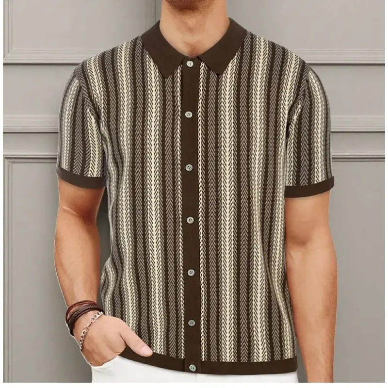 This stylish mens luxury leisure polo shirt is a standout piece for your 2026 summer collection. Designed with an elegant striped pattern and button-down front, it features a short-sleeve cardigan-style knit construction that blends casual comfort with business refinement. The soft, breathable knit fabric ensures all-day comfort and a premium feel, making it suitable for daily wear, business casual settings, office commutes, and weekend outings. With its sophisticated silhouette and versatile design, this knitwear piece easily pairs with trousers, casual pants, or shorts to create a polished and modern look. Whether for work or leisure, it delivers timeless style and exceptional comfort for the modern gentleman.Material: High-quality