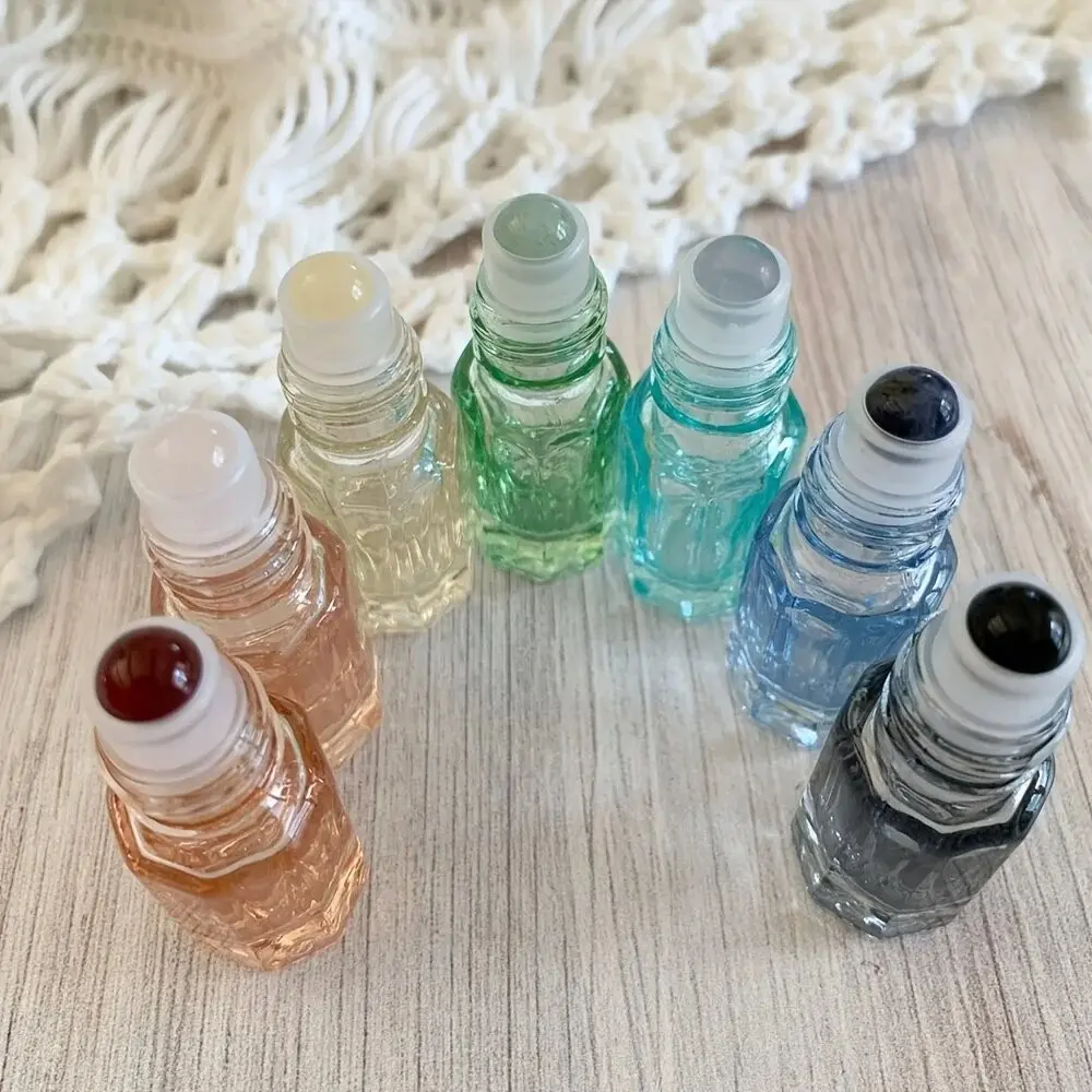 7-Piece Gemstone-Shaped Rollerball Bottles, Glass Essential Oil Containers, Aromatherapy, Travel-Friendly, Perfect Gift, DIY Perfume