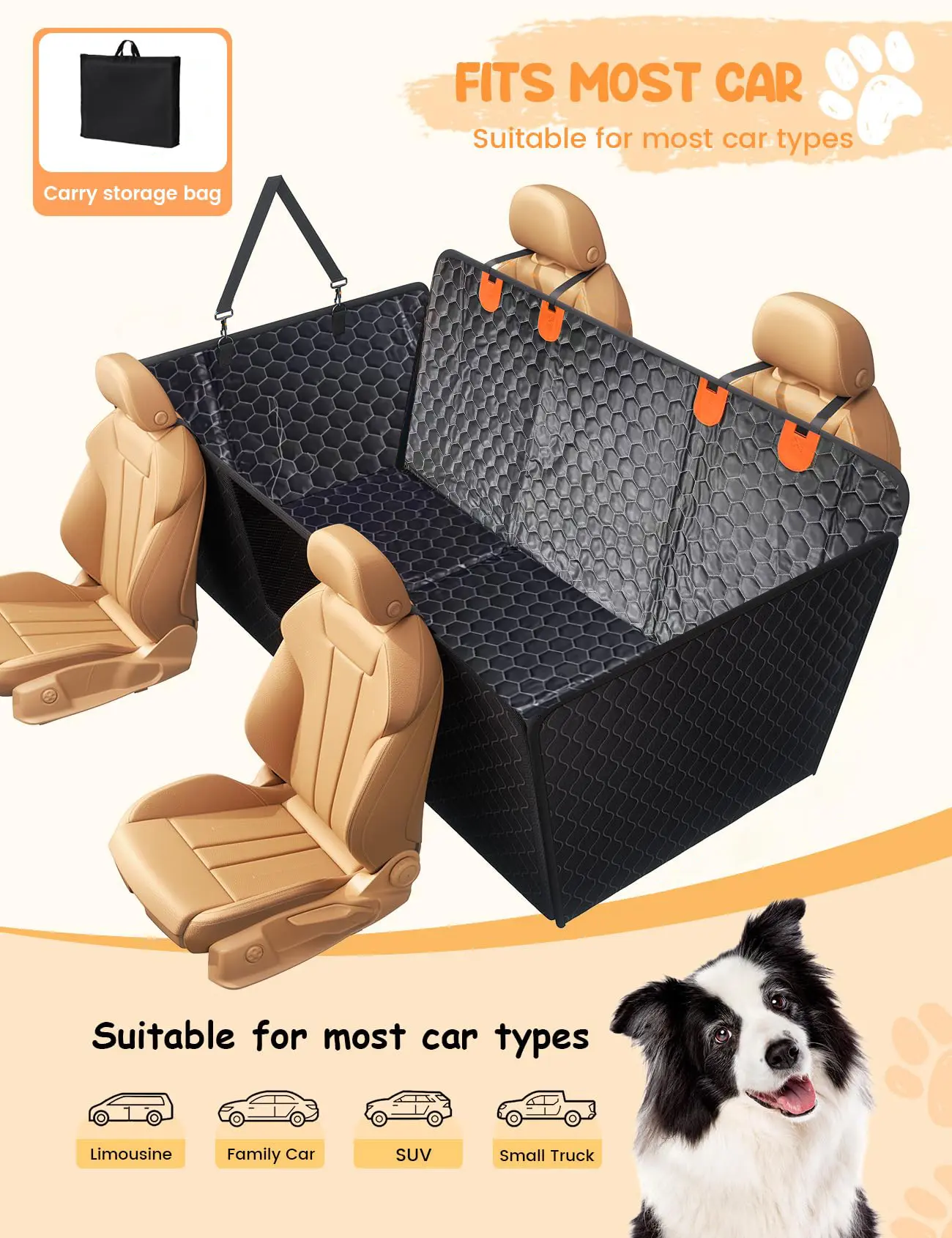 400LBS Hard Bottom Dog Car Hammock - Heavy Duty Waterproof Dog Seat Cover Back Seat Extender, Mesh Window, Universal Fit for Sedans SUVs Trucks, Supports Large Dogs
