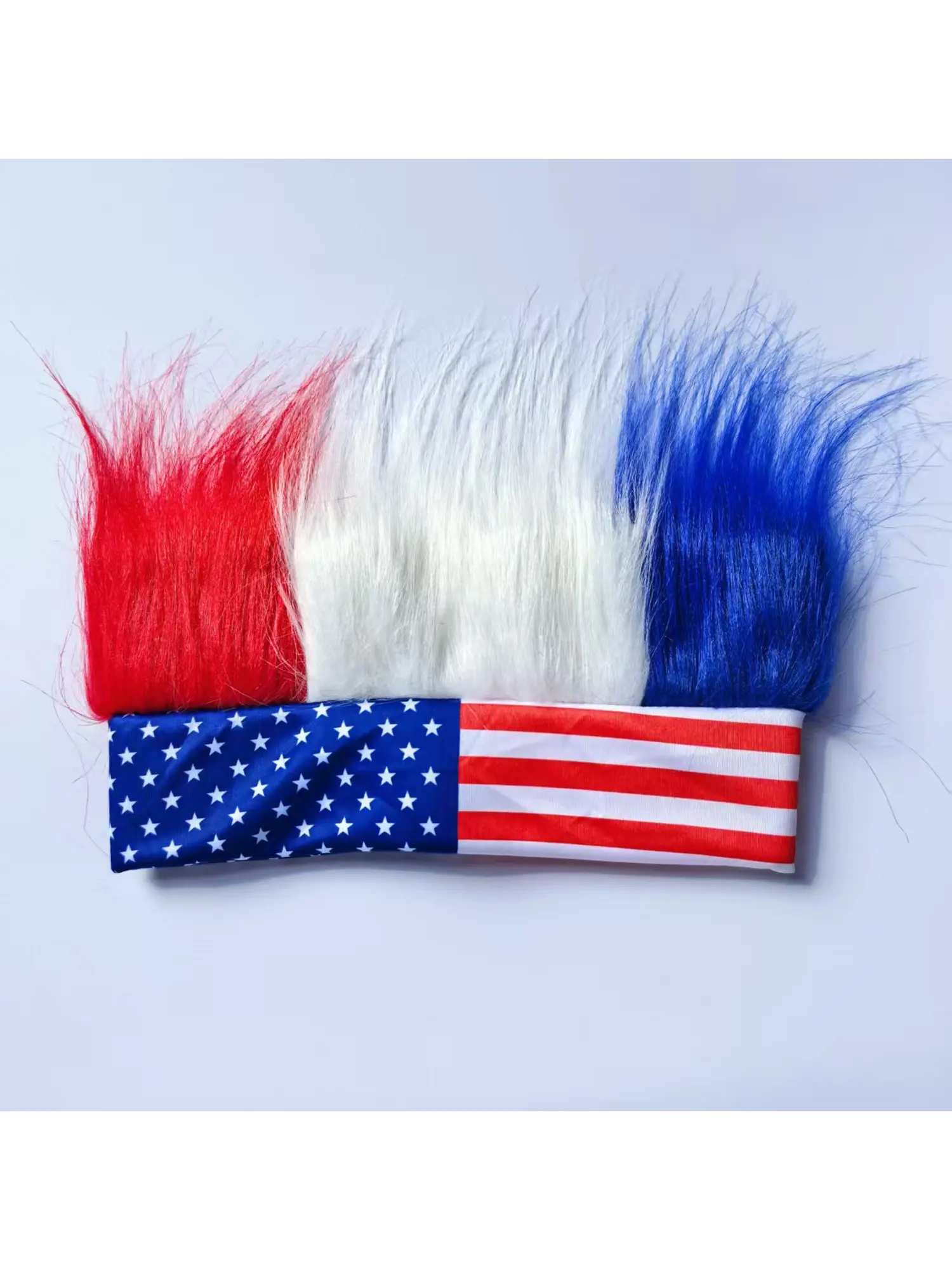 American Flag Fan Wig Hat Headband Independence Day Party Cheerleader Accessory, Patriotic Usa Hair Curl Straight Design, All Seasons Wear