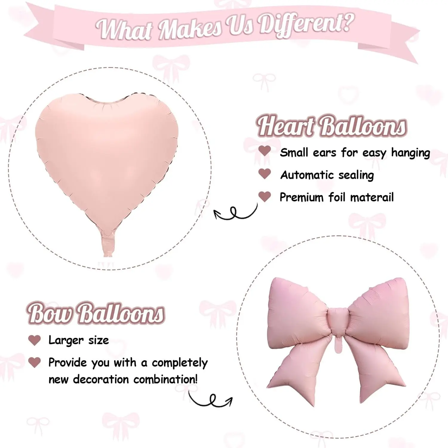 Pink and black heart-shaped bow balloons, 8 18 inch heart-shaped balloons and 2 38 inch butterfly balloons (with 2 accessories), suitable for girls' birthdays, baby showers, bridal wedding party decorations