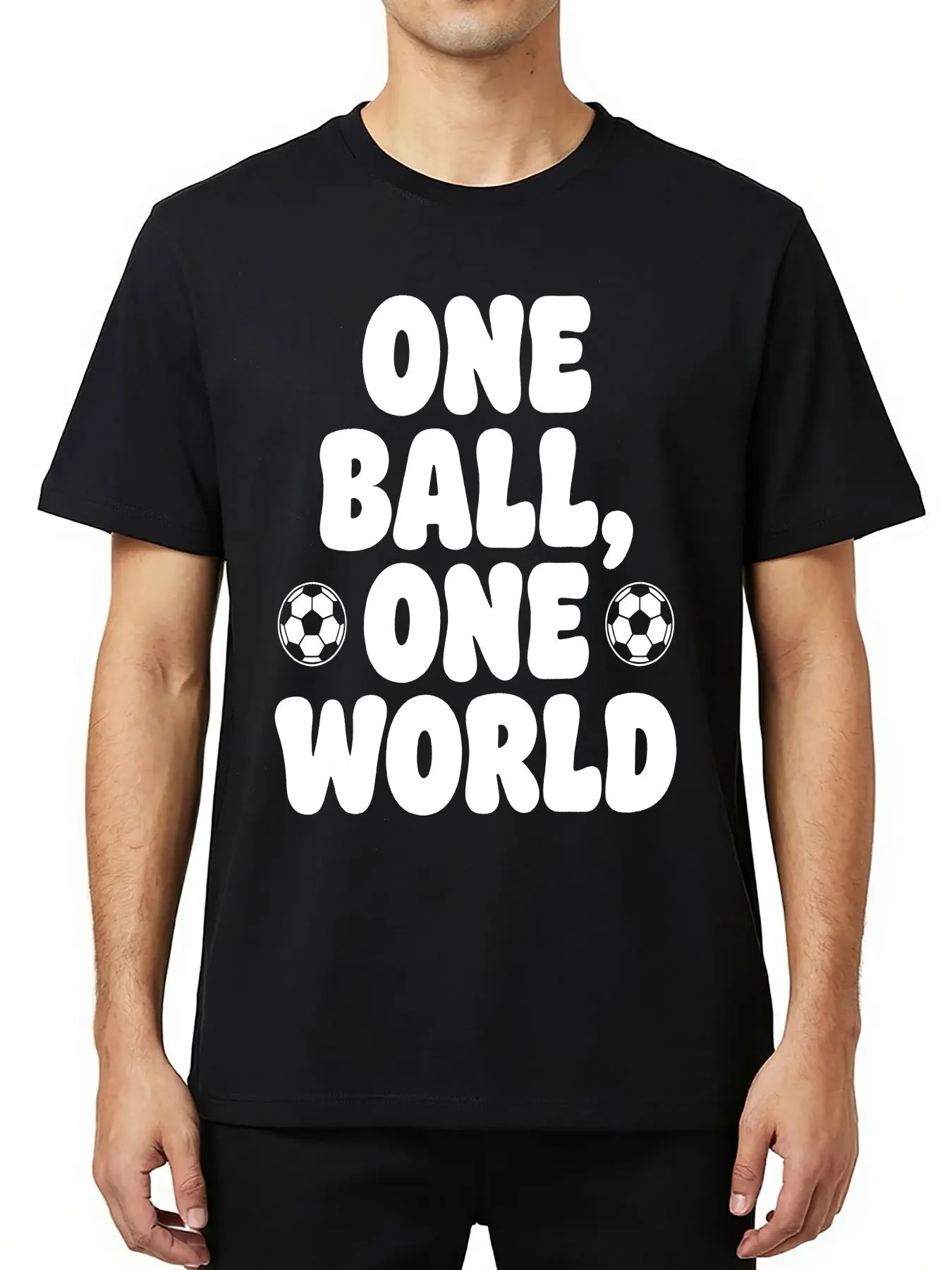 Men's Soccer Fan T-Shirt, 'one Ball, One World' Print, Casual Short Sleeve Top, Perfect Football Gift for Sports Enthusiasts