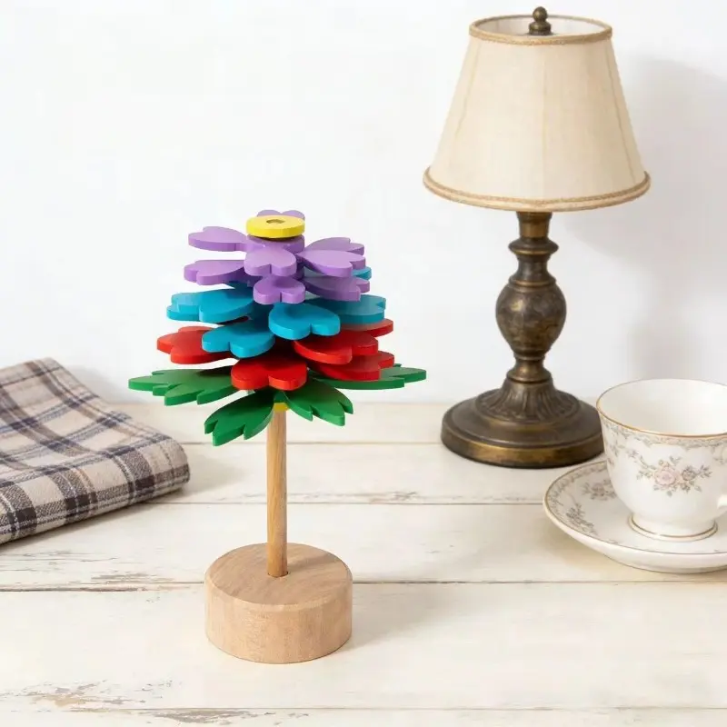 Ins Viral Decor Alert! 1pc Creative Stress-Relief Spiral Flower, Wooden Craft with Colorful Petals—A Feast for Your Eyes!