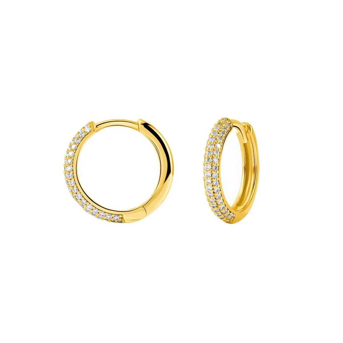 Experience the brilliance of Synthetic Moissanite huggie earrings. With widths of 10mm, 12mm, and 14mm, these hand-set earrings showcase the great eight arrows and eight hearts synthetic moissanite stones, it shines brighter than other stones. Made with 925 sterling silver, they pass the tester with ease. Elevate your style with these sparkling earrings.