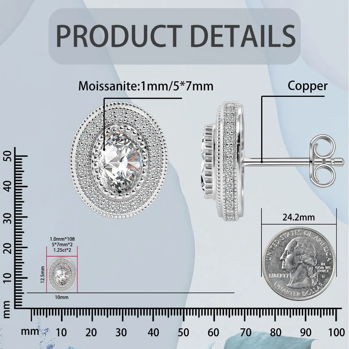 ·Size: 5*7mm*2 (1ct*2), 1.0mm*108 (0.25ct*2), Total: 2.5ct