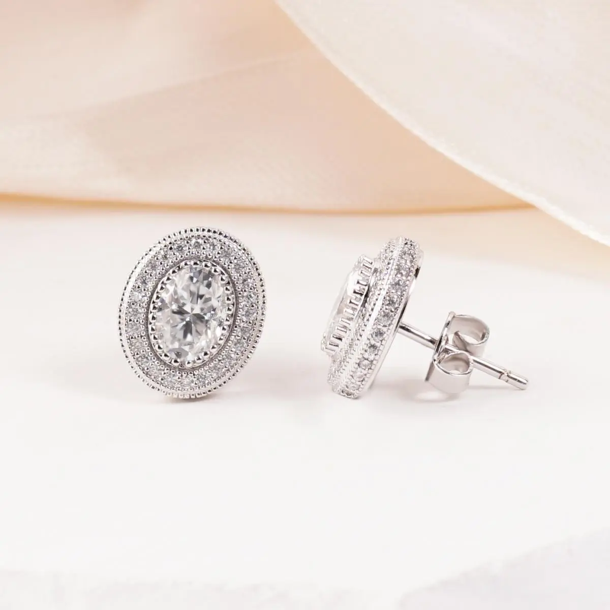 Classic Oval Halo Stud Design–Vintage Elegance That Never Fades!