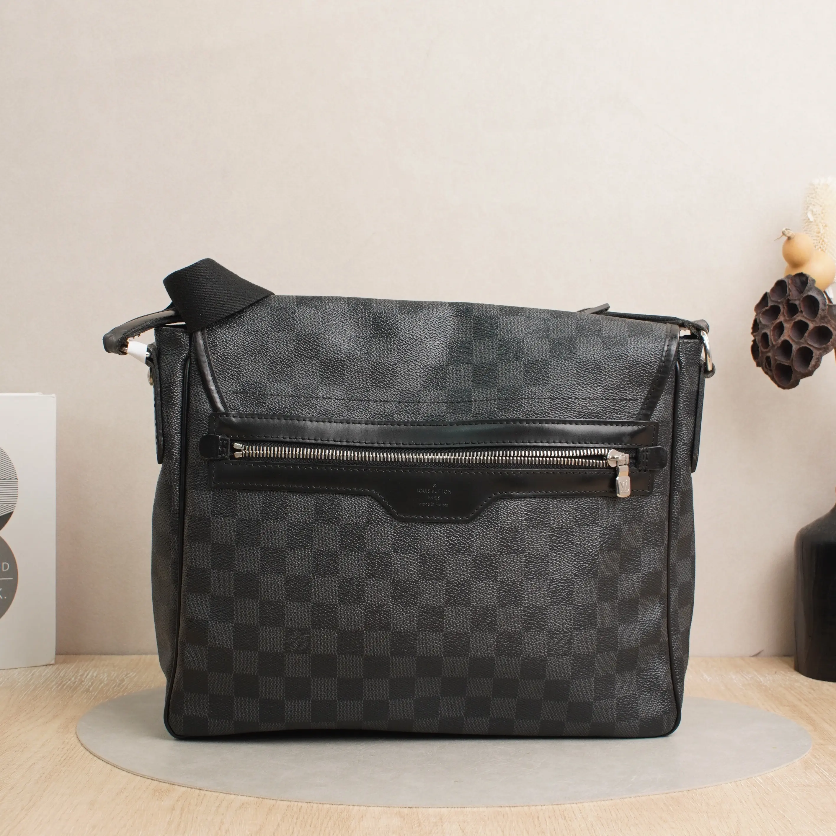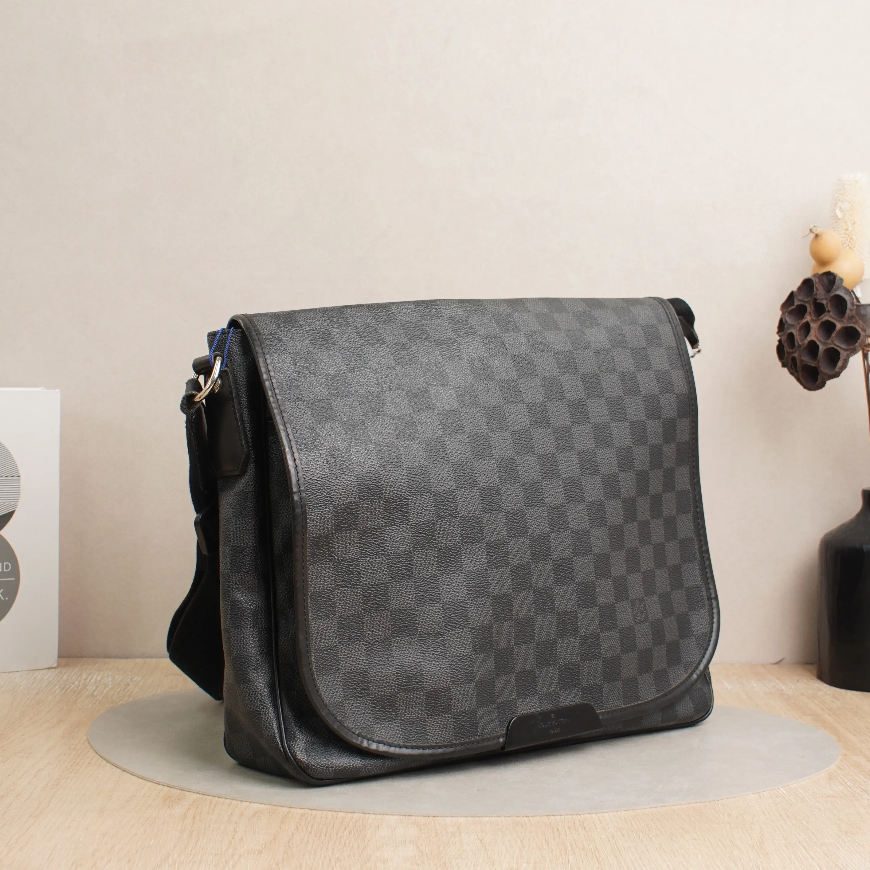 ·Design: Classic Louis Vuitton Damier Graphite pattern with flap closure, spacious and practical for daily use.