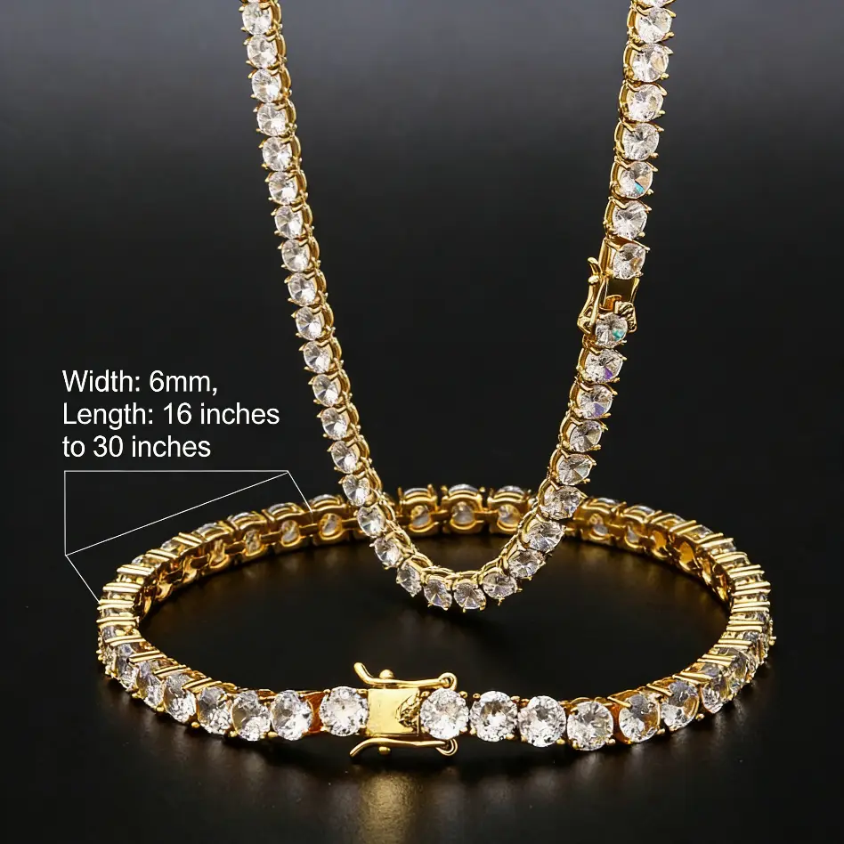 4mm 18K Gold Plated Tennis Chain Set (Necklace + Bracelet)