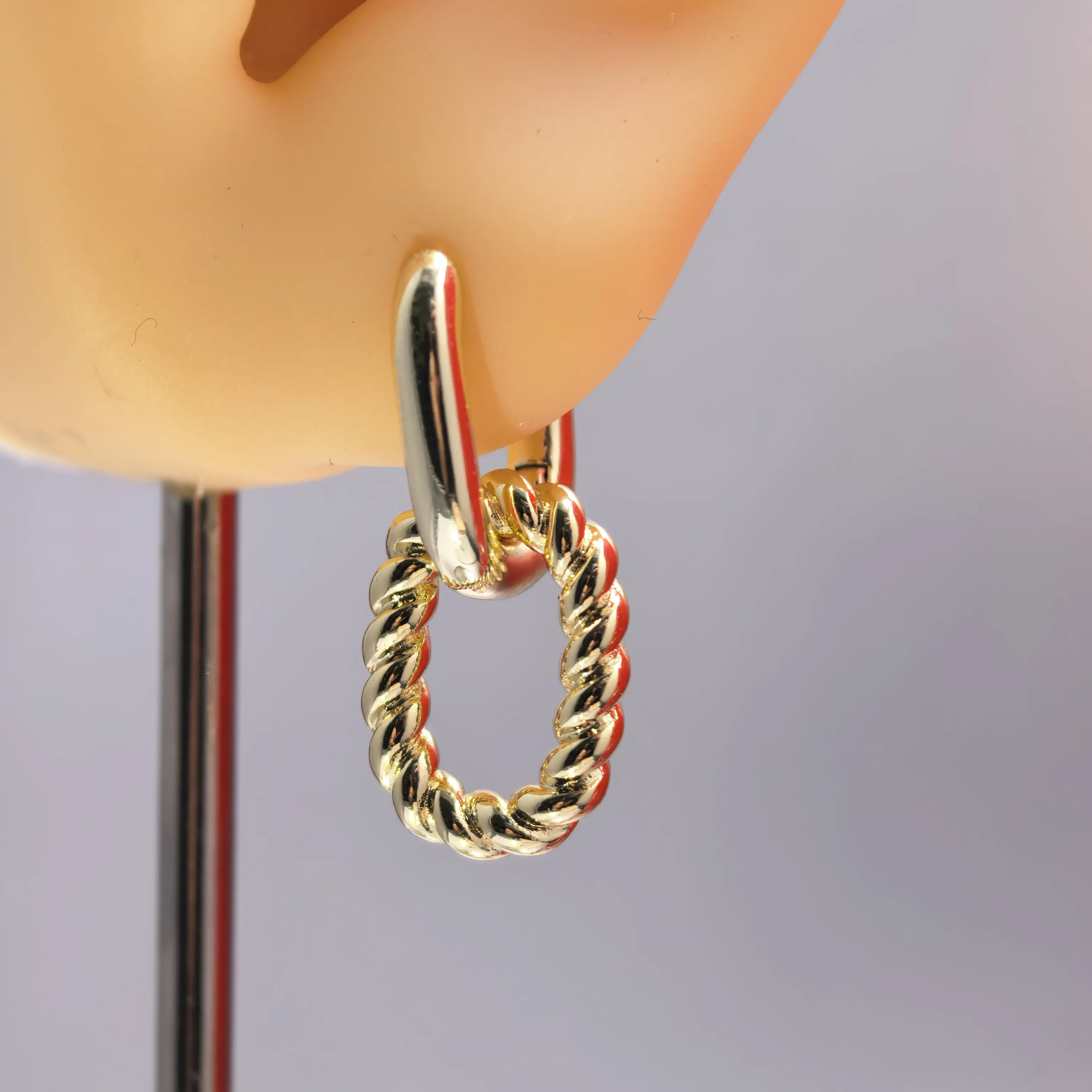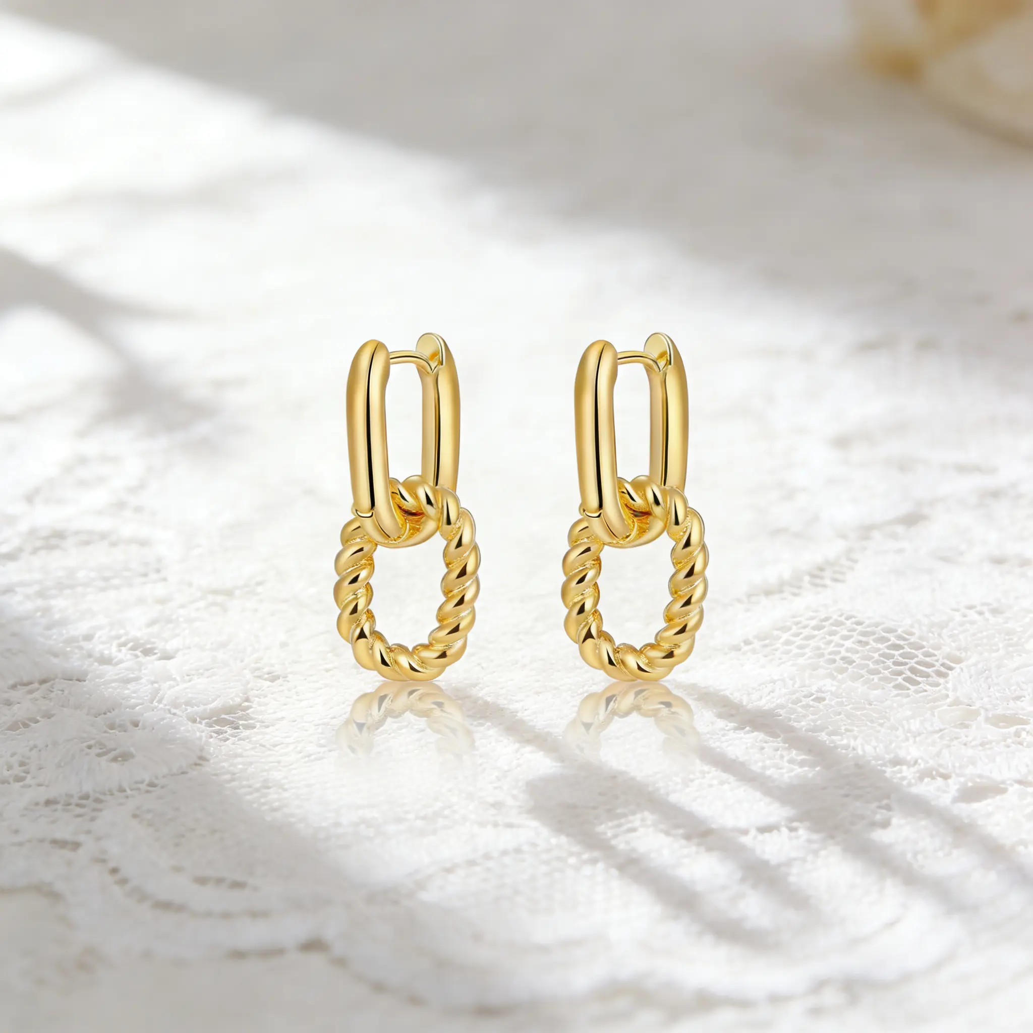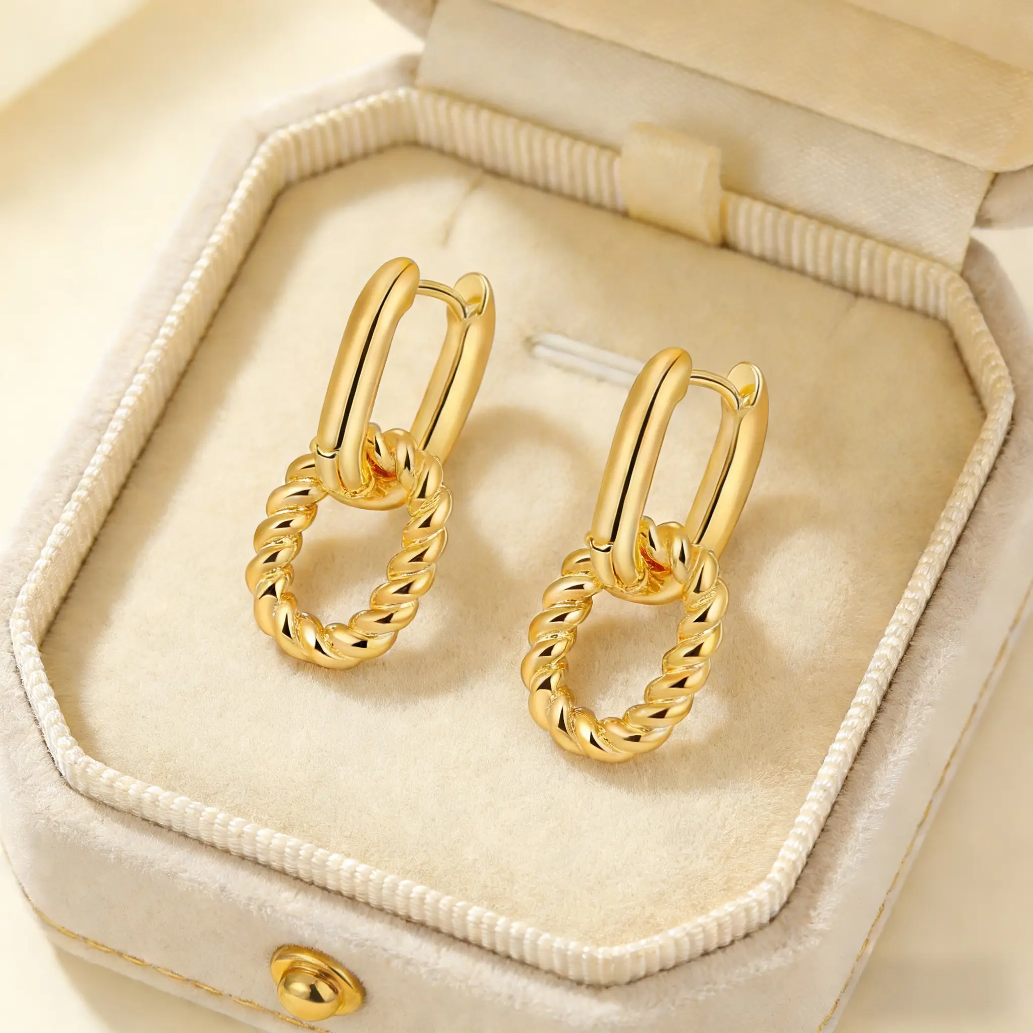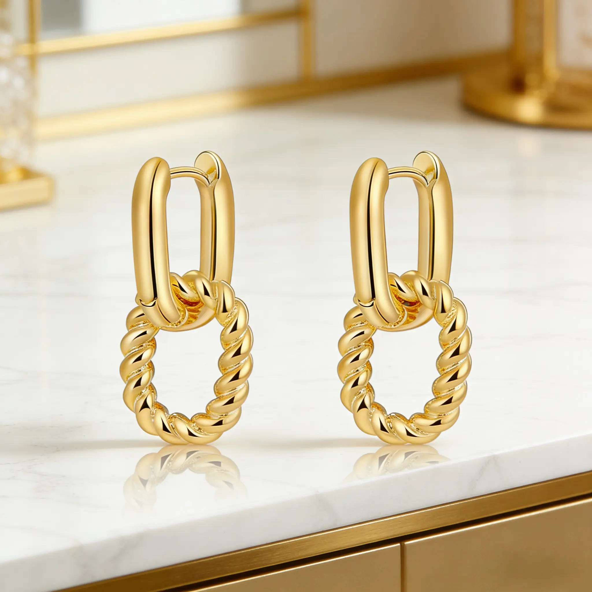 Gold Twisted Chain Link Earrings, Hypoallergenic 925 Silver Post, 18K Gold Plated Dangle Earrings, Vintage French Style, Waterproof Tarnish Free, Gift for Her