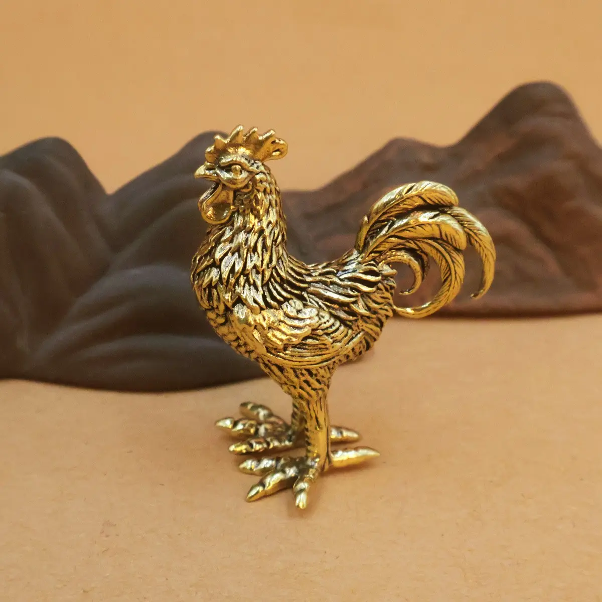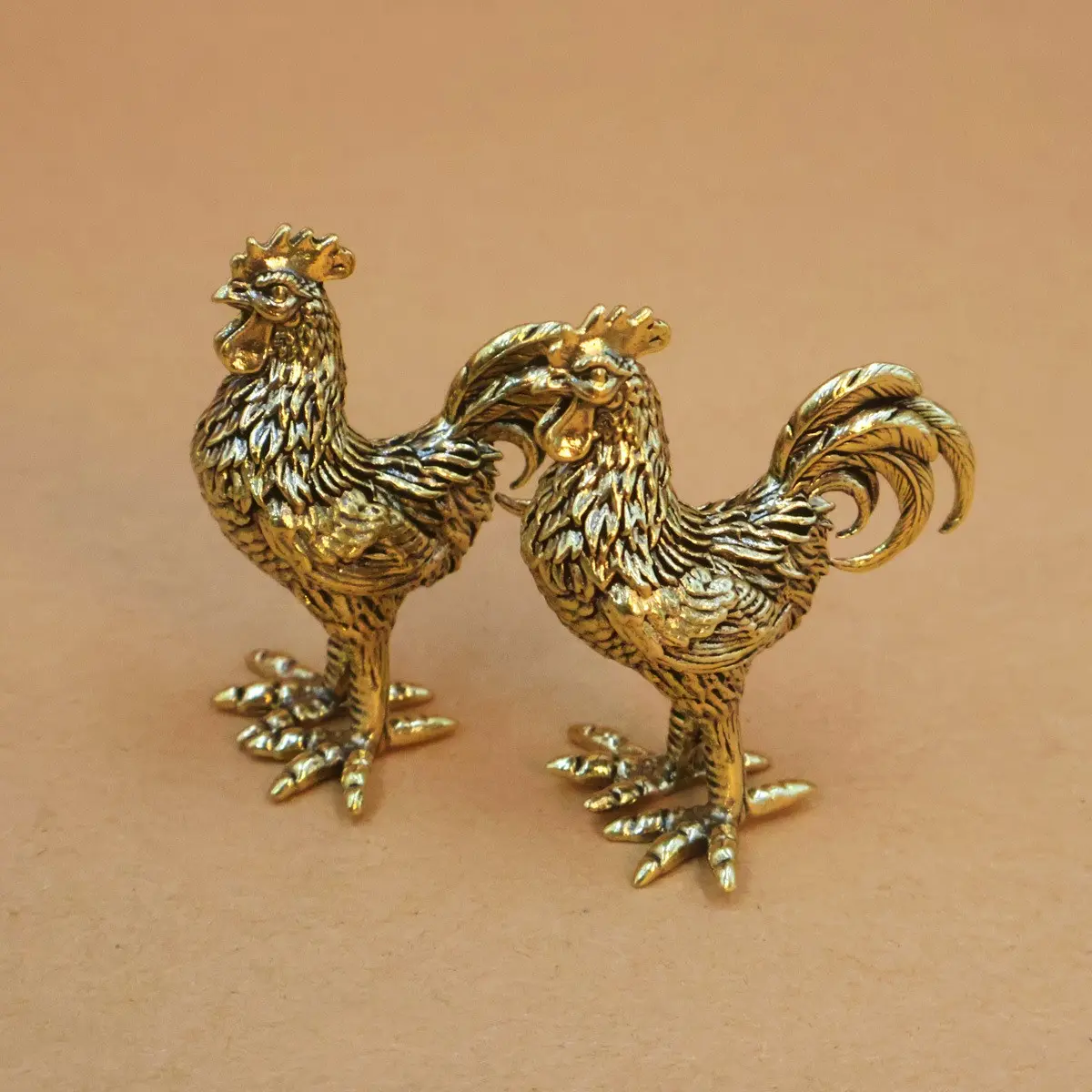 Brass Rooster Hen Model Sculpture, Desktop Decoration Metal Copper Cast Craft, Desk Ornament, Home Decor, Office Accent