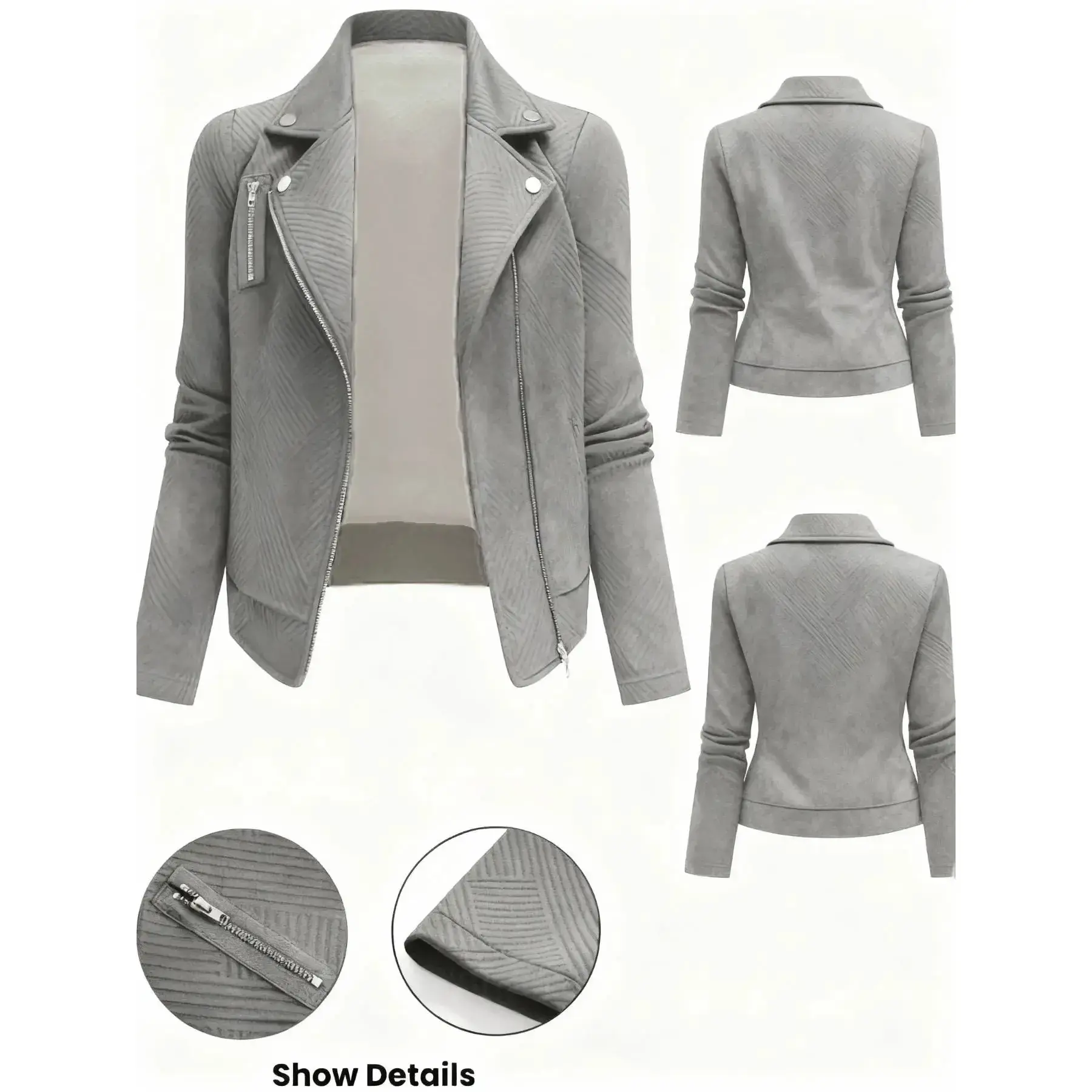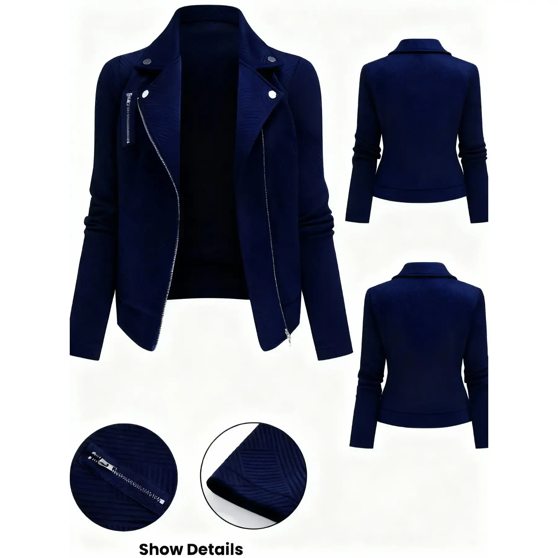 【Zippered Closure】: Featuring a secure zippered front, this jacket provides ease of wear while ensuring warmth during chilly seasons. 【Tailored Fit】: The fitted silhouette enhances body shape, offering a flattering look that distinguishes it from other outerwear. 【Long Sleeve】: Designed with long sleeves, this jacket offers extensive coverage, making it suitable for fall and winter wardrobes. 【Plain Pattern】: The simple, plain pattern allows for easy pairing with various outfits, making it a practical addition to any closet. 【Moderate Fabric Thickness】: Crafted from moderately thick fabric, it strikes a balance between warmth and breathability, optimal for various temperatures.