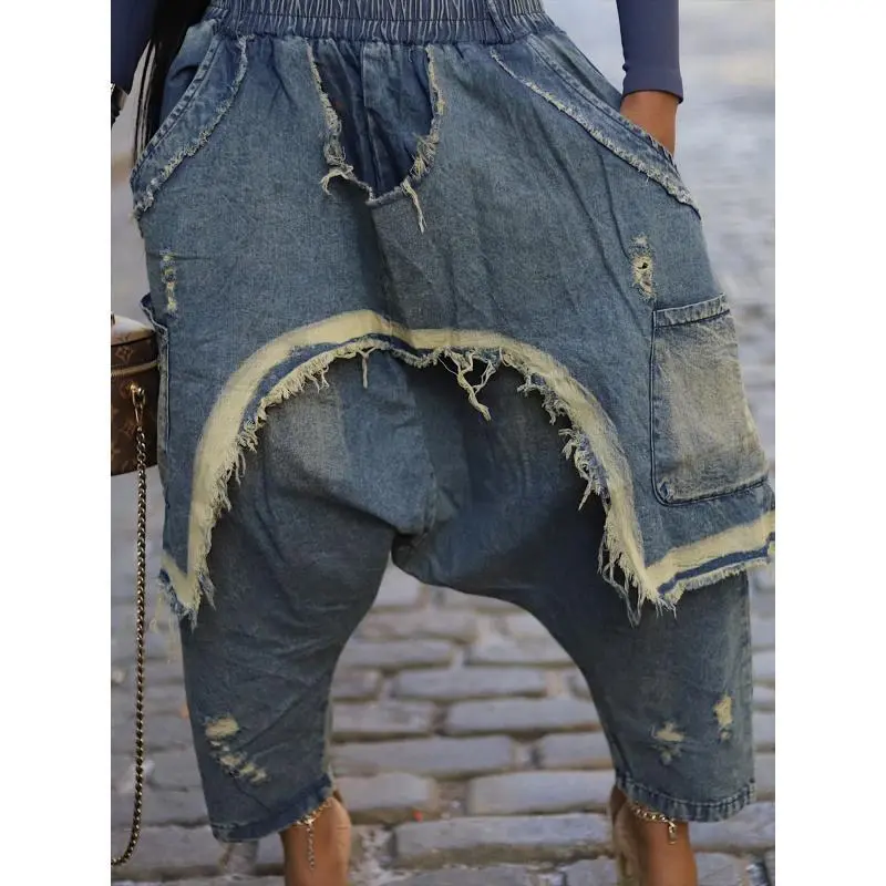 Women's fashionable patchwork harem pants, bohemian bottoms, casual loose pants, fashionable ripple design, perfect for spring and autumn