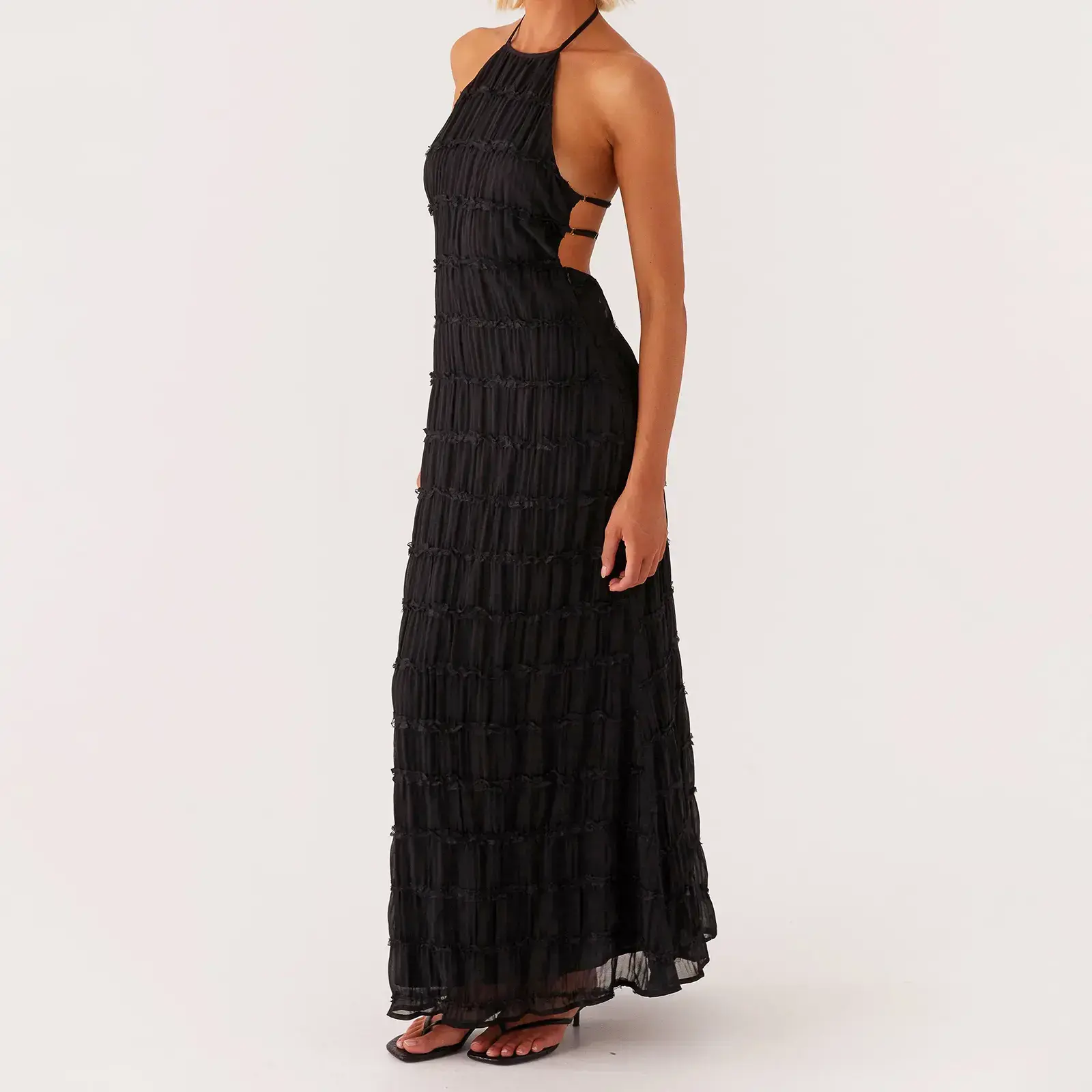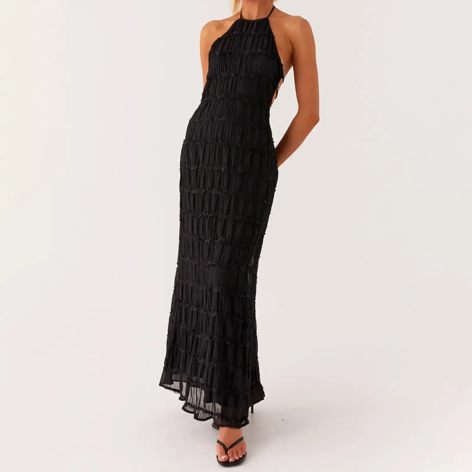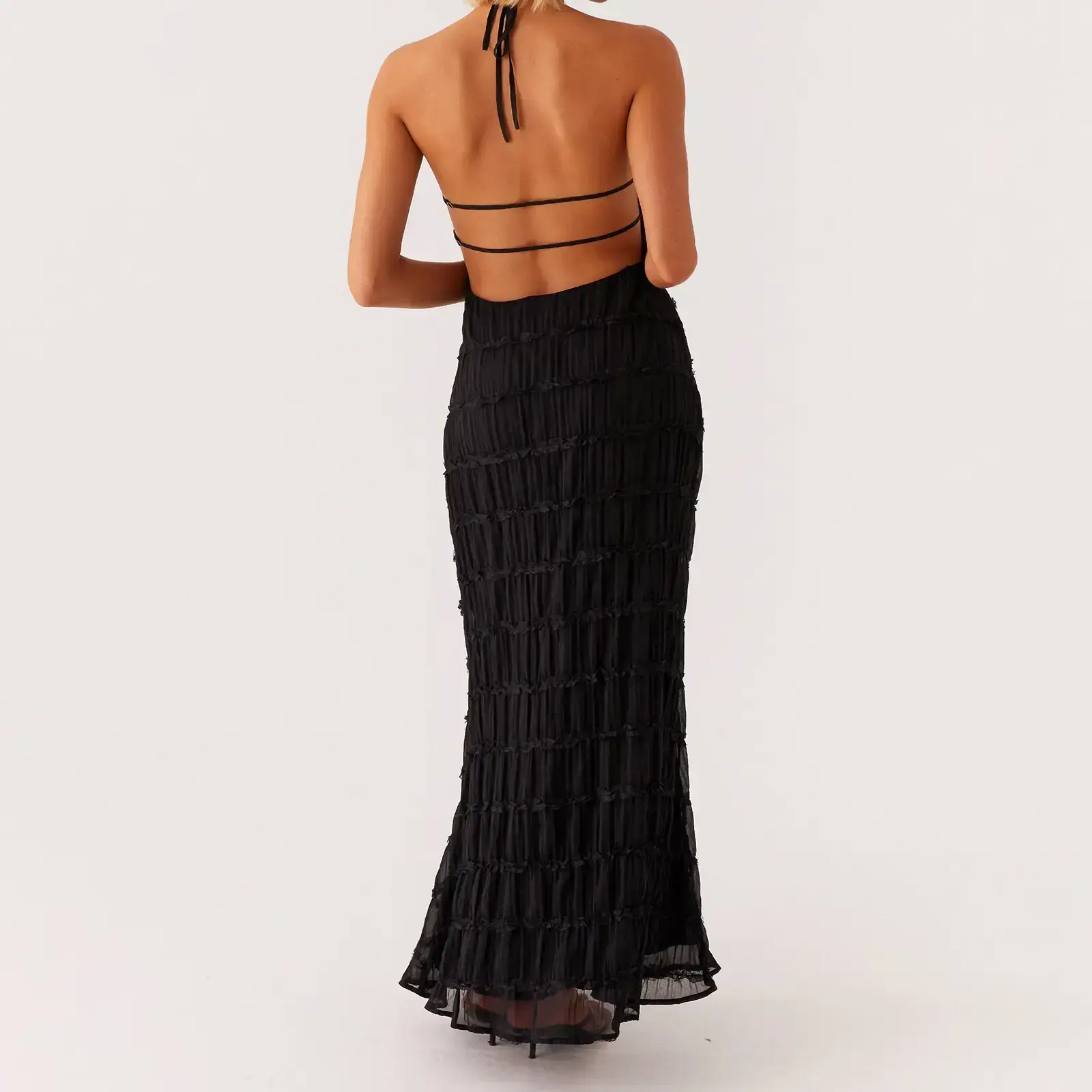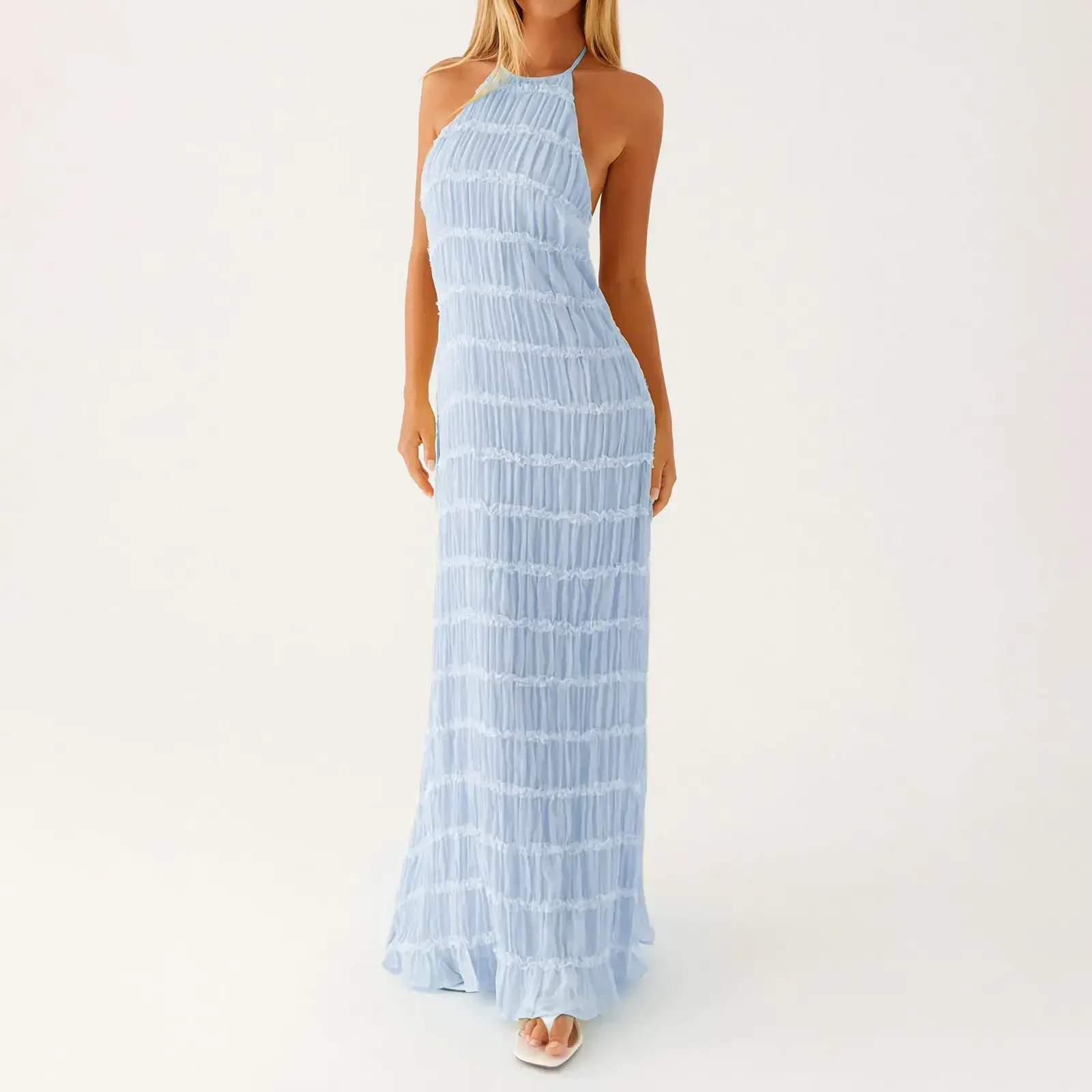 Women's Ruched Bodycon Long Dress Sleeveless Backless Solid Color Dress Cocktail Party DressRAIMENTRY