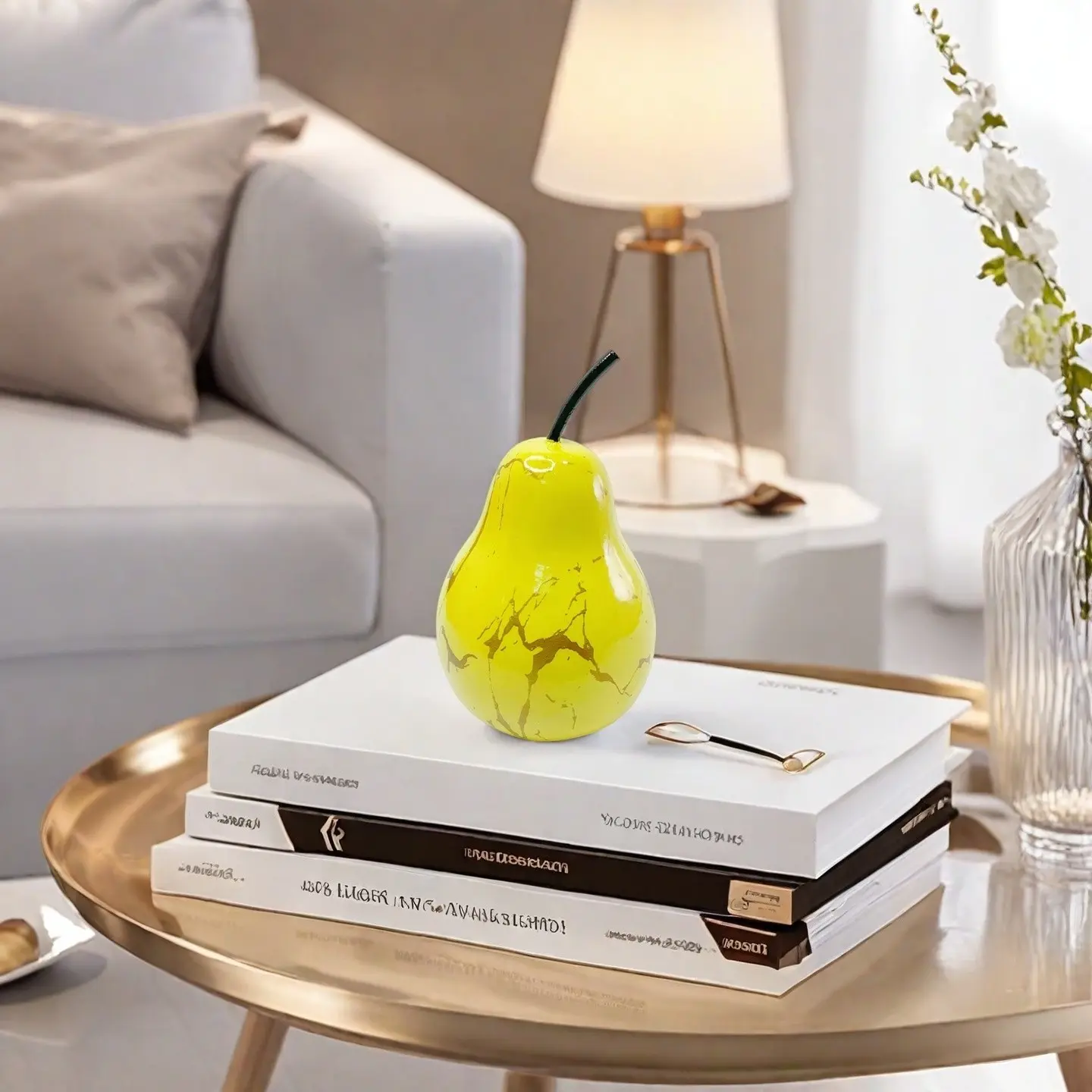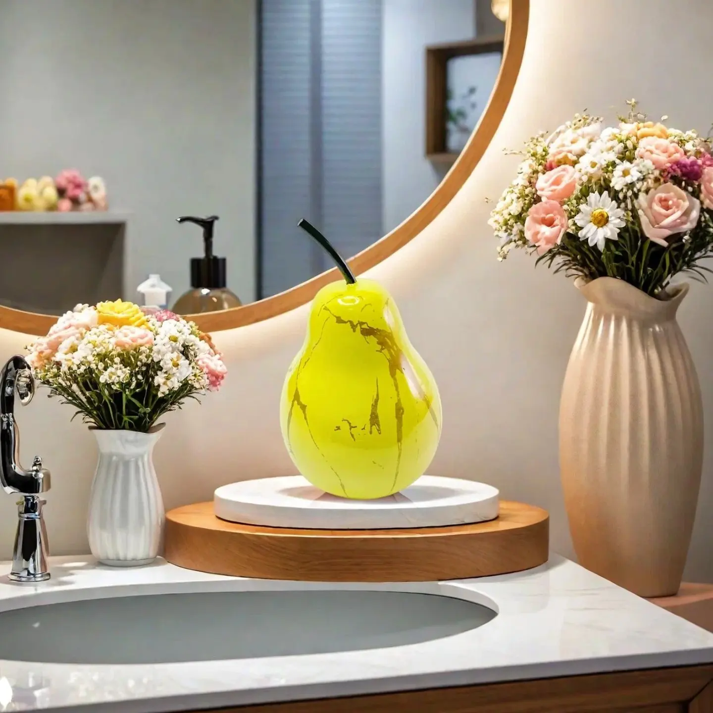 【Realistic Design】: Crafted for authenticity, this artificial pear statue captures the essence of its real counterpart.