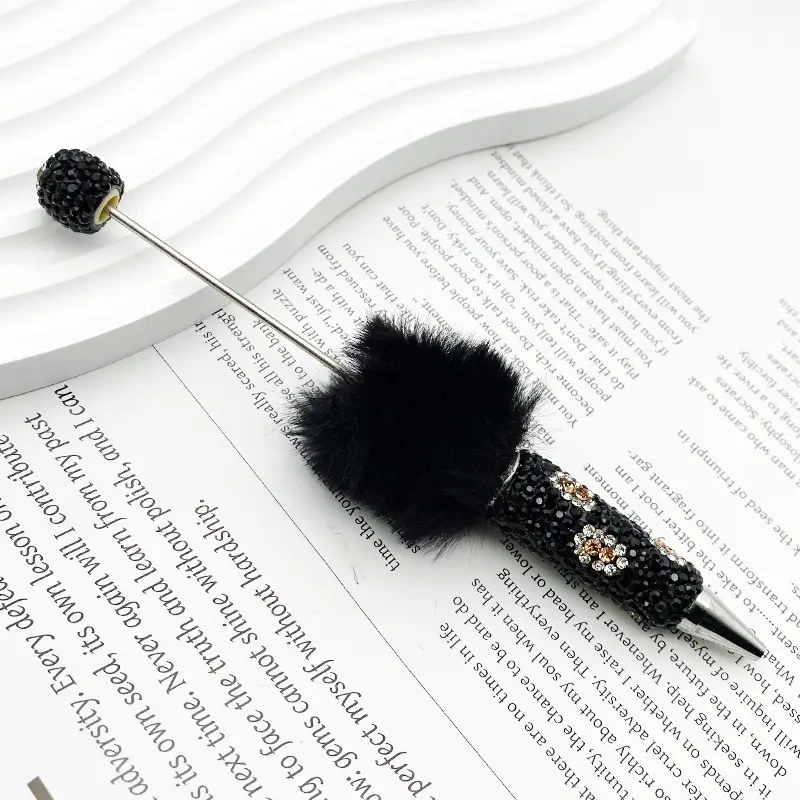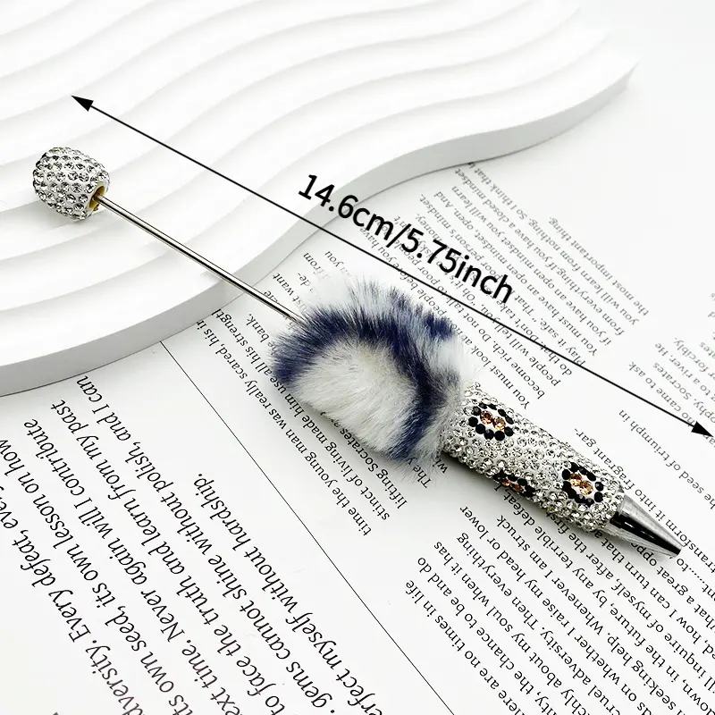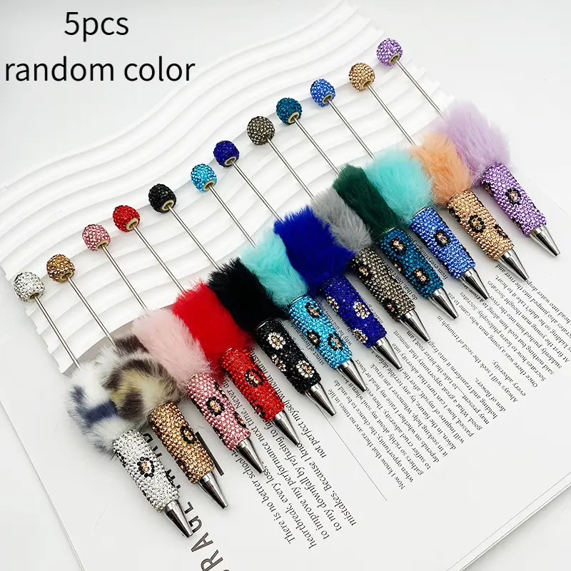 5PCS Leopard Print Full Diamond Fur Ball Bead Pen Creative DIY Beadable Cute Dot Pen Handmade Leopard Fur Heavy Metal Round Tip Pen