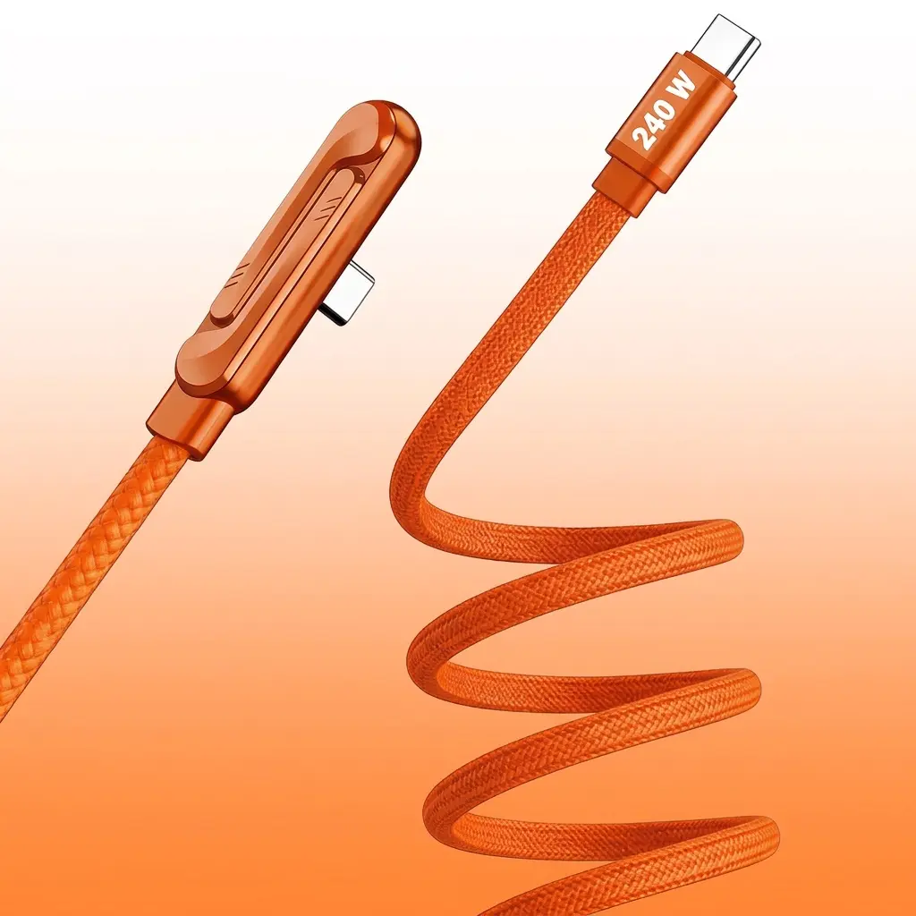 MAX 240W Foldable Phone Stand Data Cable | Dual Type-C Super Fast Charging Elbow, Braided Cable, Holds Various Phones, USB Data Transmission