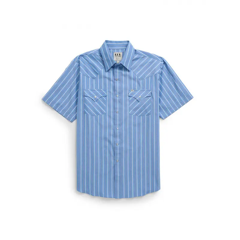 Men's short sleeved American striped Western style button up shirt - red and blueRAIMENTRY