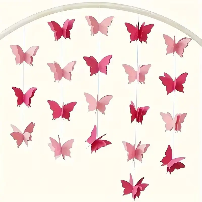 9 Strands (220 cm / 86.61 inches) Butterfly Paper Garlands — Ideal for Wedding, Valentine's Day, and Birthday Theme Decorations, as well as Party and Home Decor.