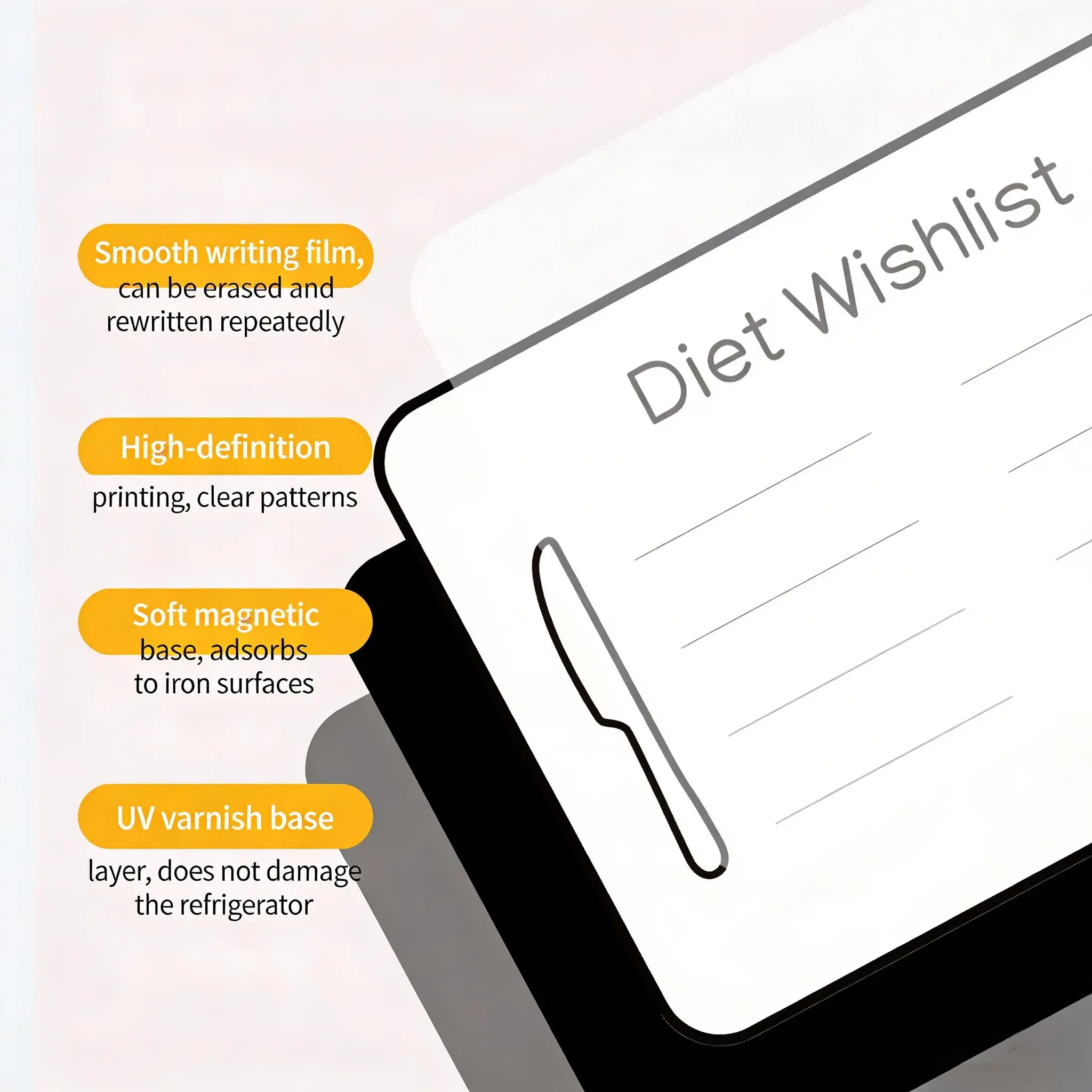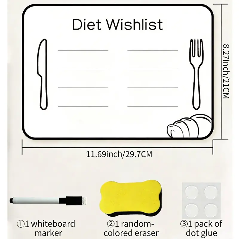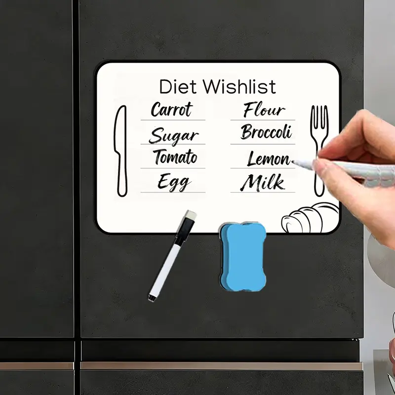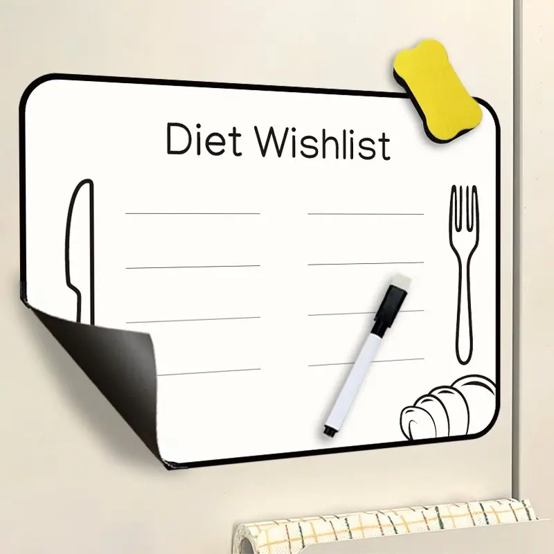 Magnetic Fridge Whiteboard Menu, Daily Shopping List Notebook, Durable Easy Clean, Strong Magnet, Perfect for Recipes Grocery Notes