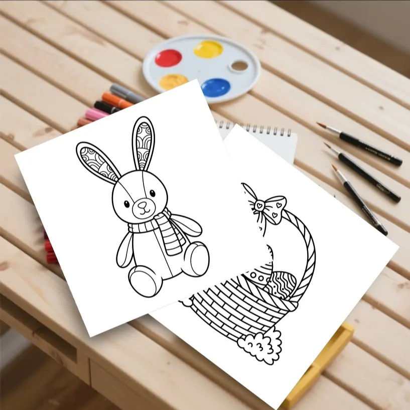 【Unique Artwork】: Features original hand-drawn illustrations with cute and bold patterns, creating a distinct Easter coloring experience.
