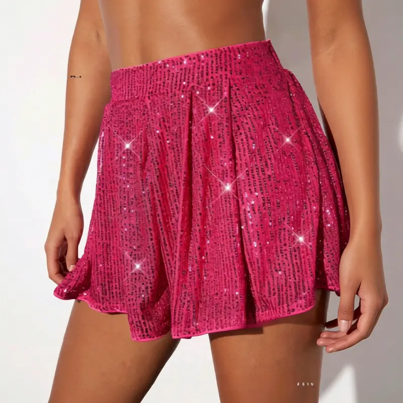 Random Plush Gift And 30-Day Warranty Coverage Women Shiny Shorts Stylish Design Comfortable Fabric Soft Breathable Lightweight Wear Slim Fit Figure Flattering Trendy Glossy Texture Elegant Feminine Casual Party Wear Daily Outfit High Waist Design