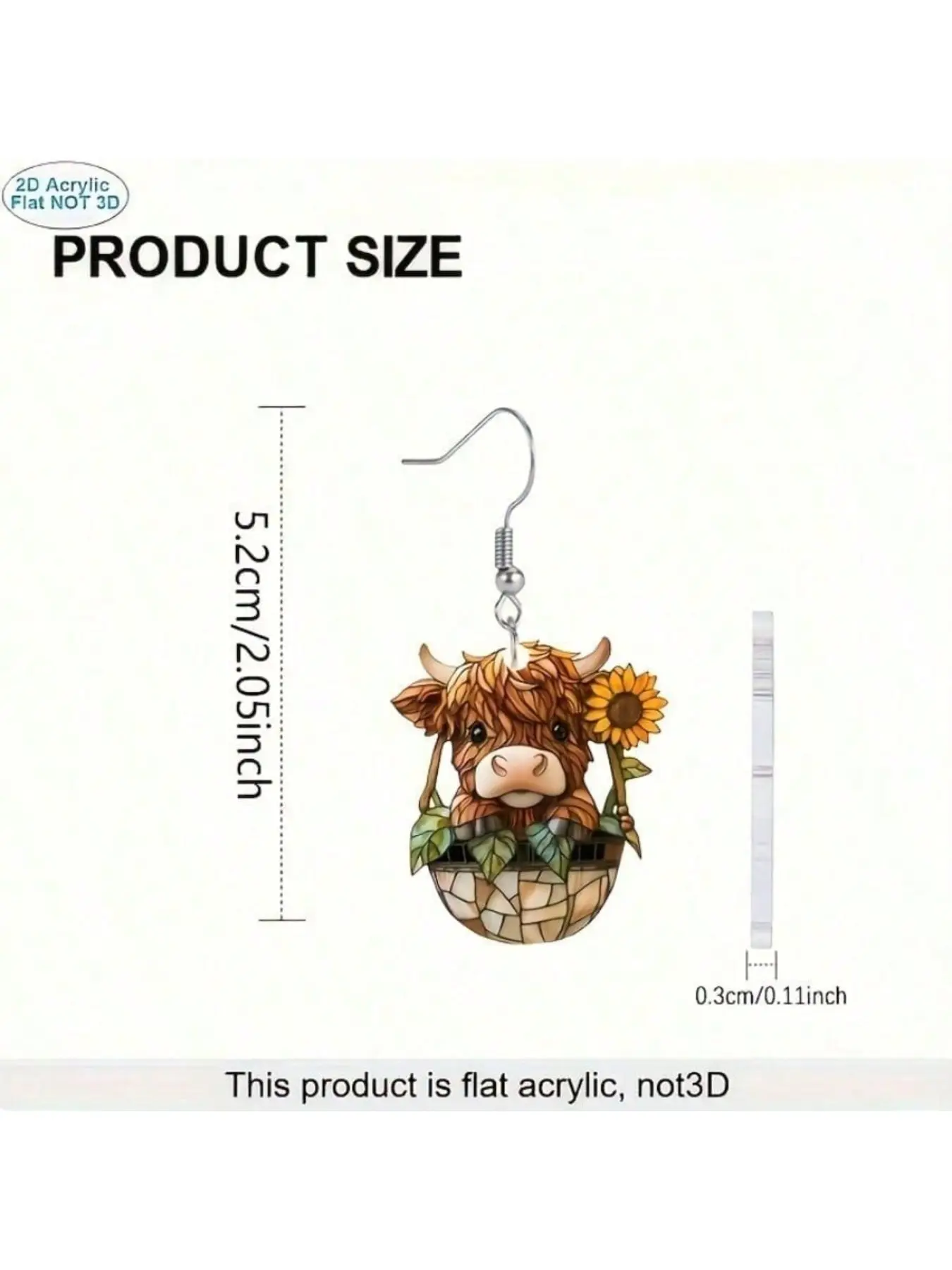 1 pair of rural cow printed acrylic earrings - lightweight and versatile, suitable for daily use and parties, cute earrings