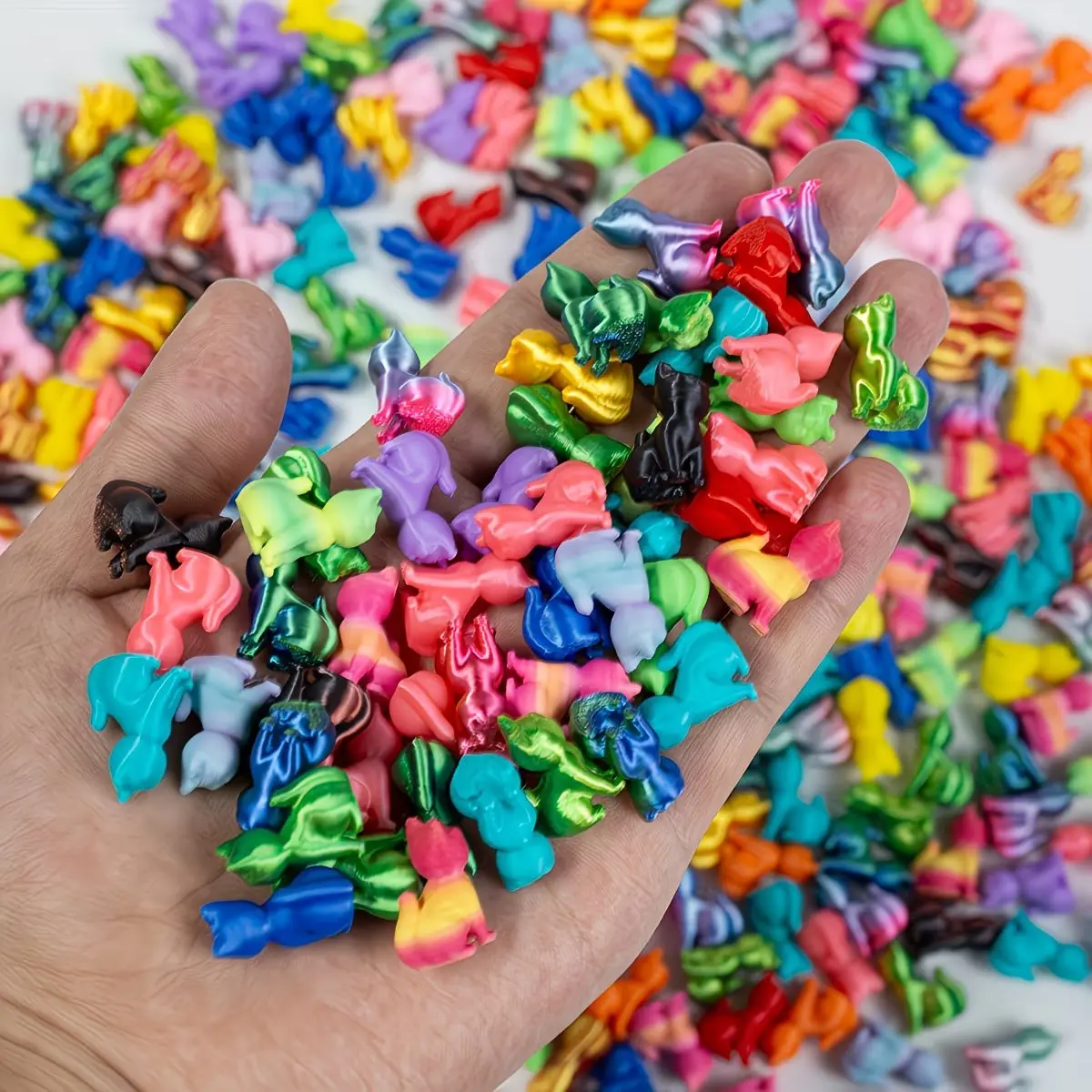 50 pcs 3D-printed small cats in random colors