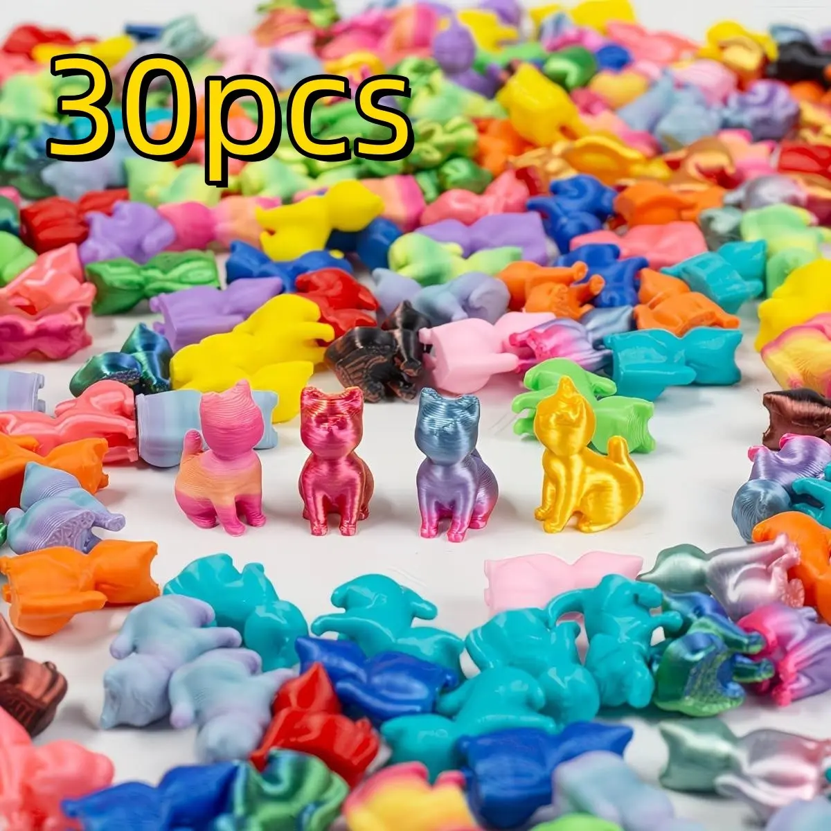 30 pcs 3D-printed small cats in random colors