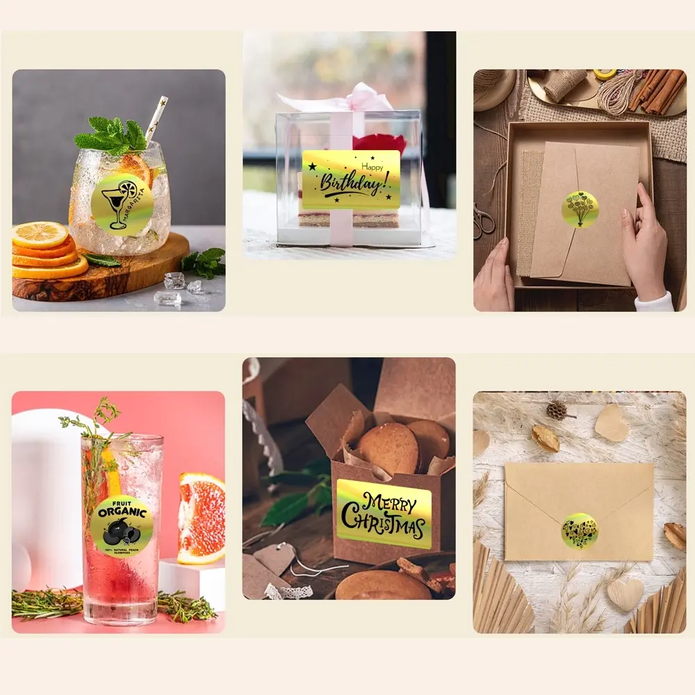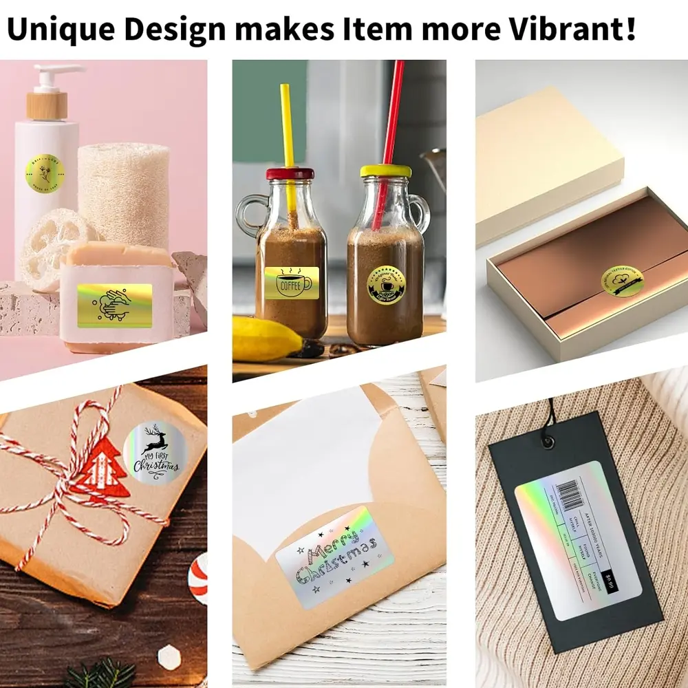 Holographic Silver Thermal Labels, 400pcs/roll Self-Adhesive Round Stickers, Custom Logo Design DIY Price Tags, Customizable Stickers, Compatible with Phomemo Printers