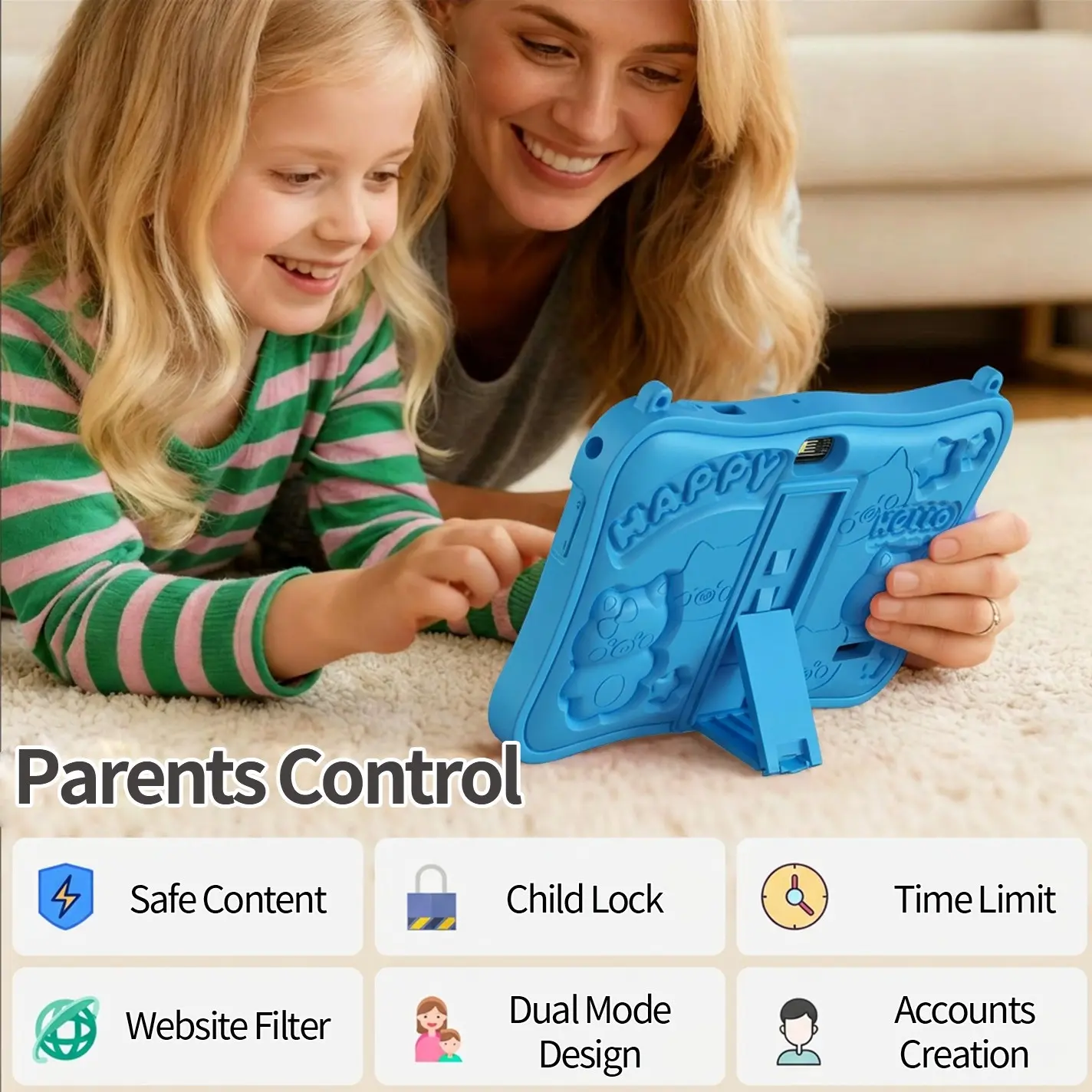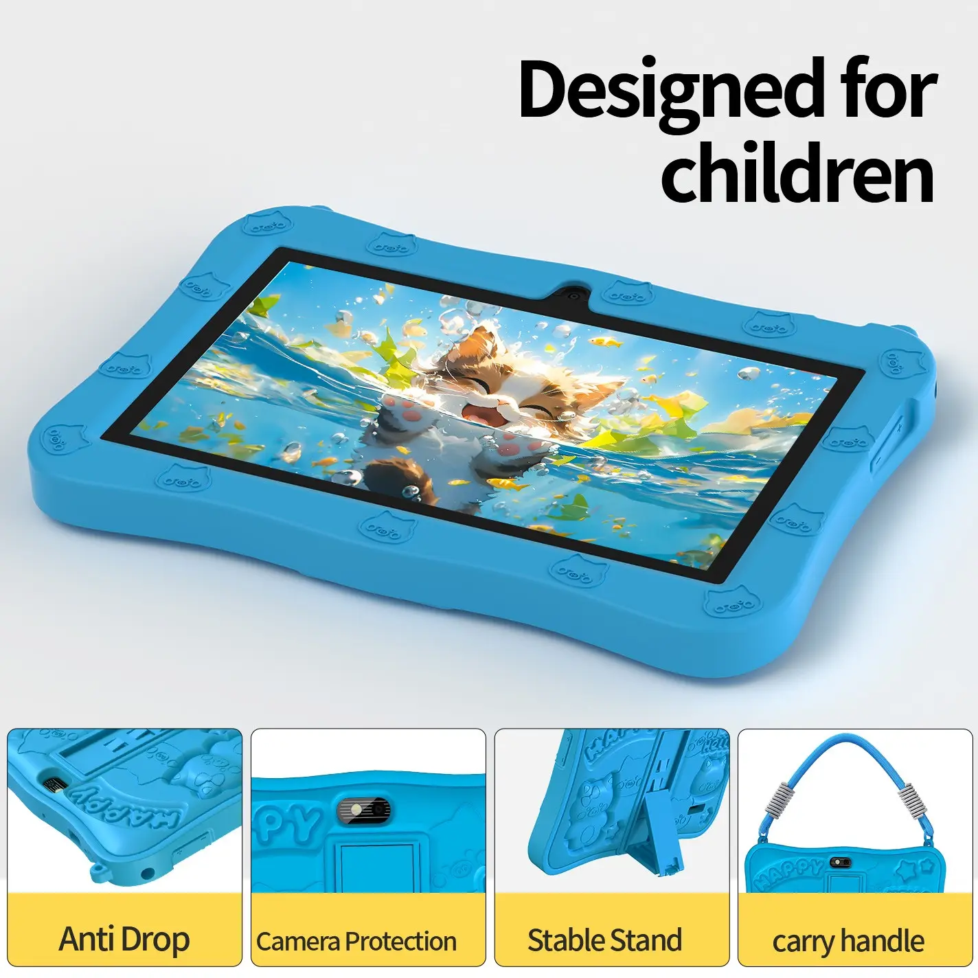 7 Inch Kids Tablet PC Android 13.0 4GB 64GB, Dual Camera 2mp+5mp, WiFi Bluetooth-compatible, Shockproof Case, Parental Control, Ideal Gift