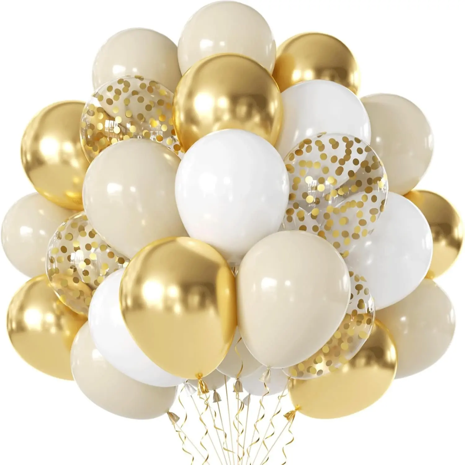 50 piece set of white and gold balloons, metallic colored latex balloon set, suitable for birthday, engagement, wedding anniversary parties, indoor and outdoor decoration gifts