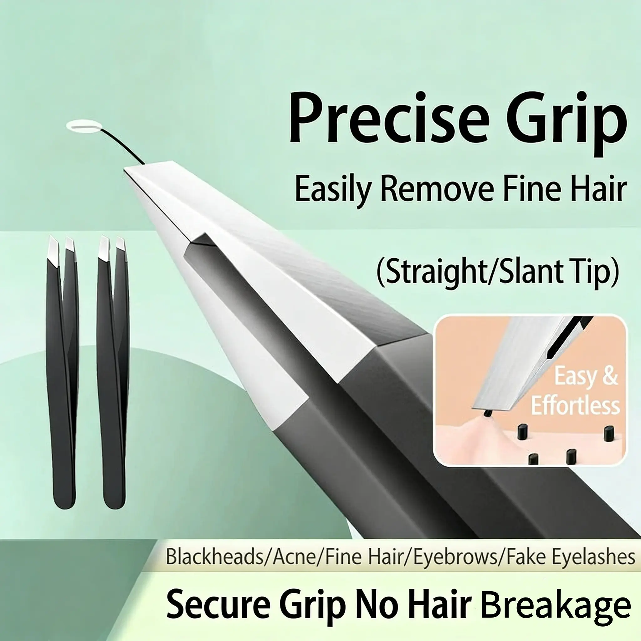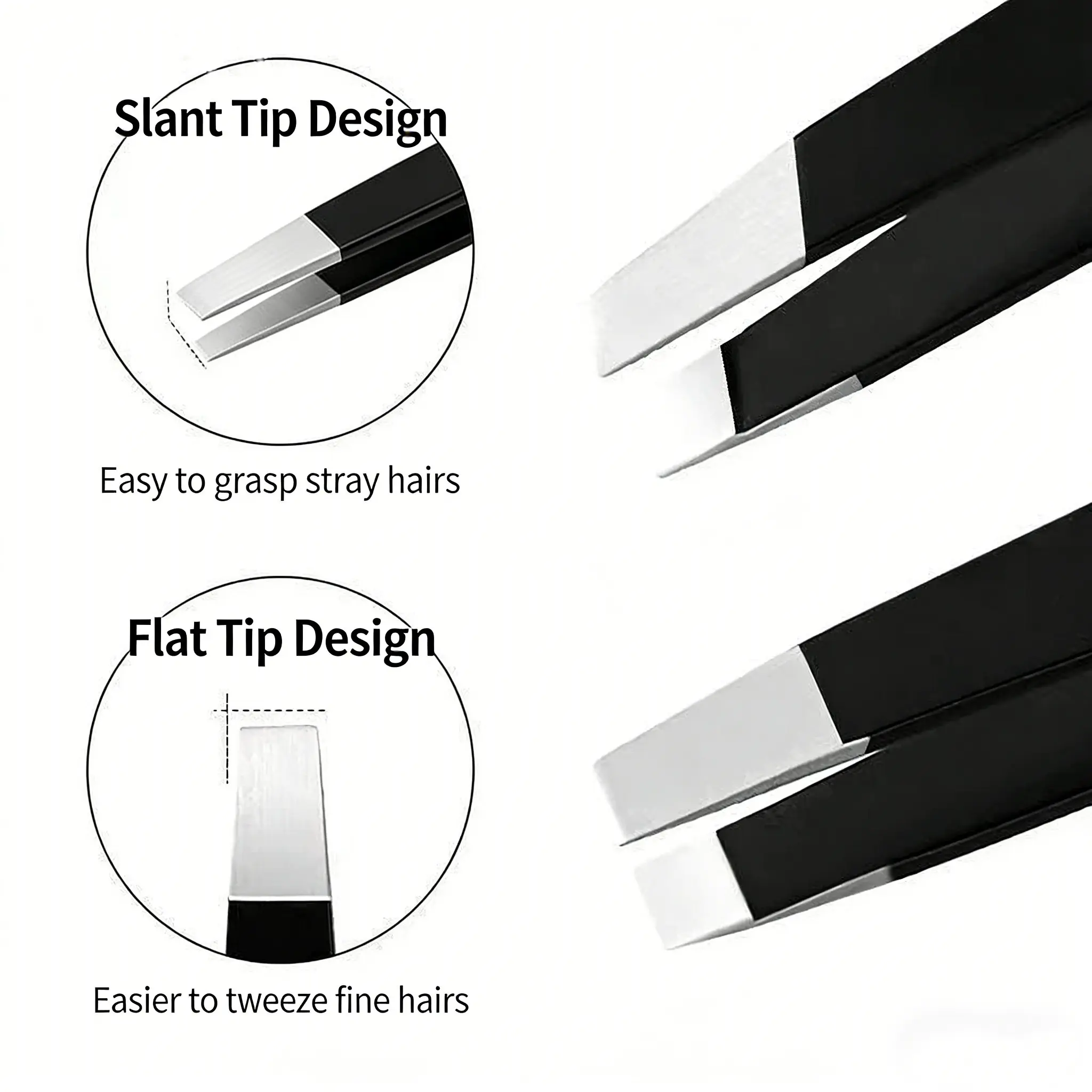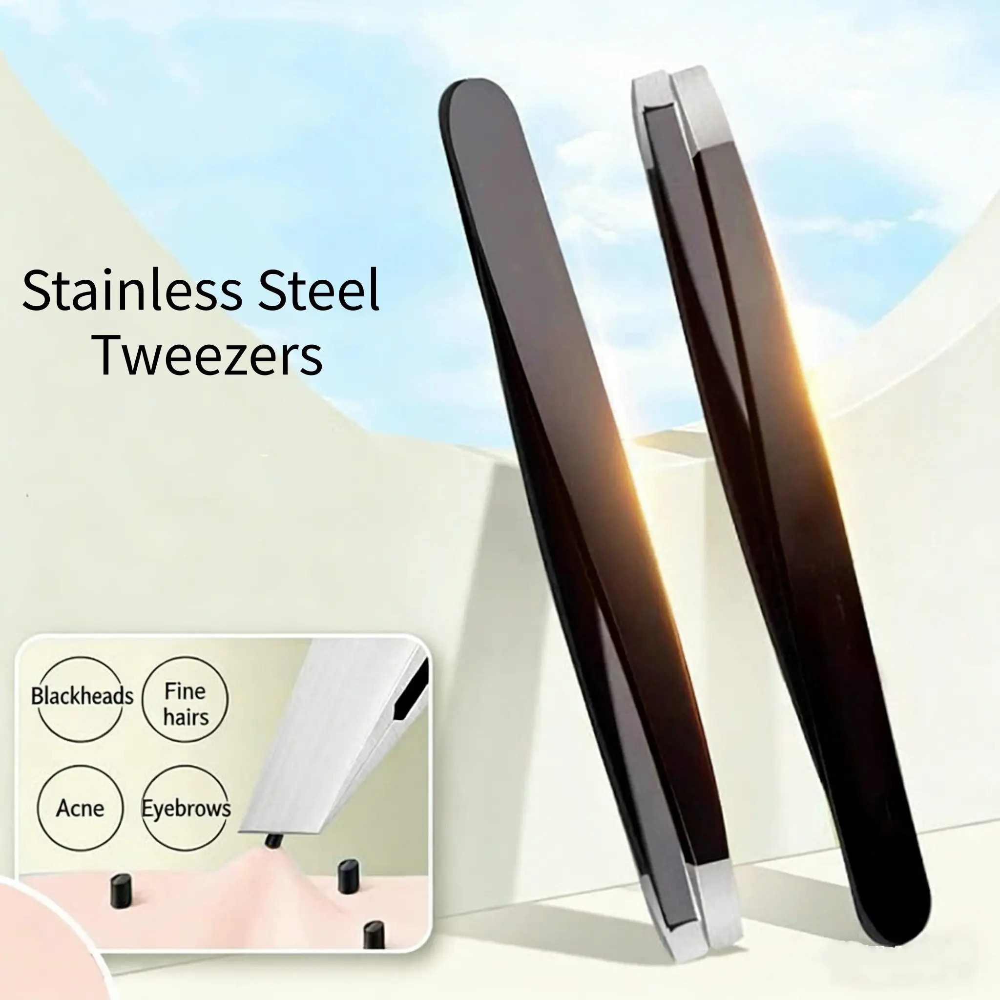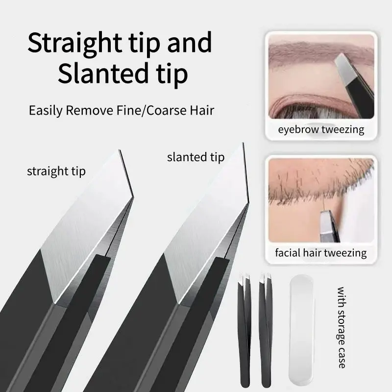 2pcs/lot Stainless Steel Tweezers, Pointed Tip Hair Removal Clamps, Eyelash Extension & Nail Art Black Tweezers, Anti-Static Precision Tweezers