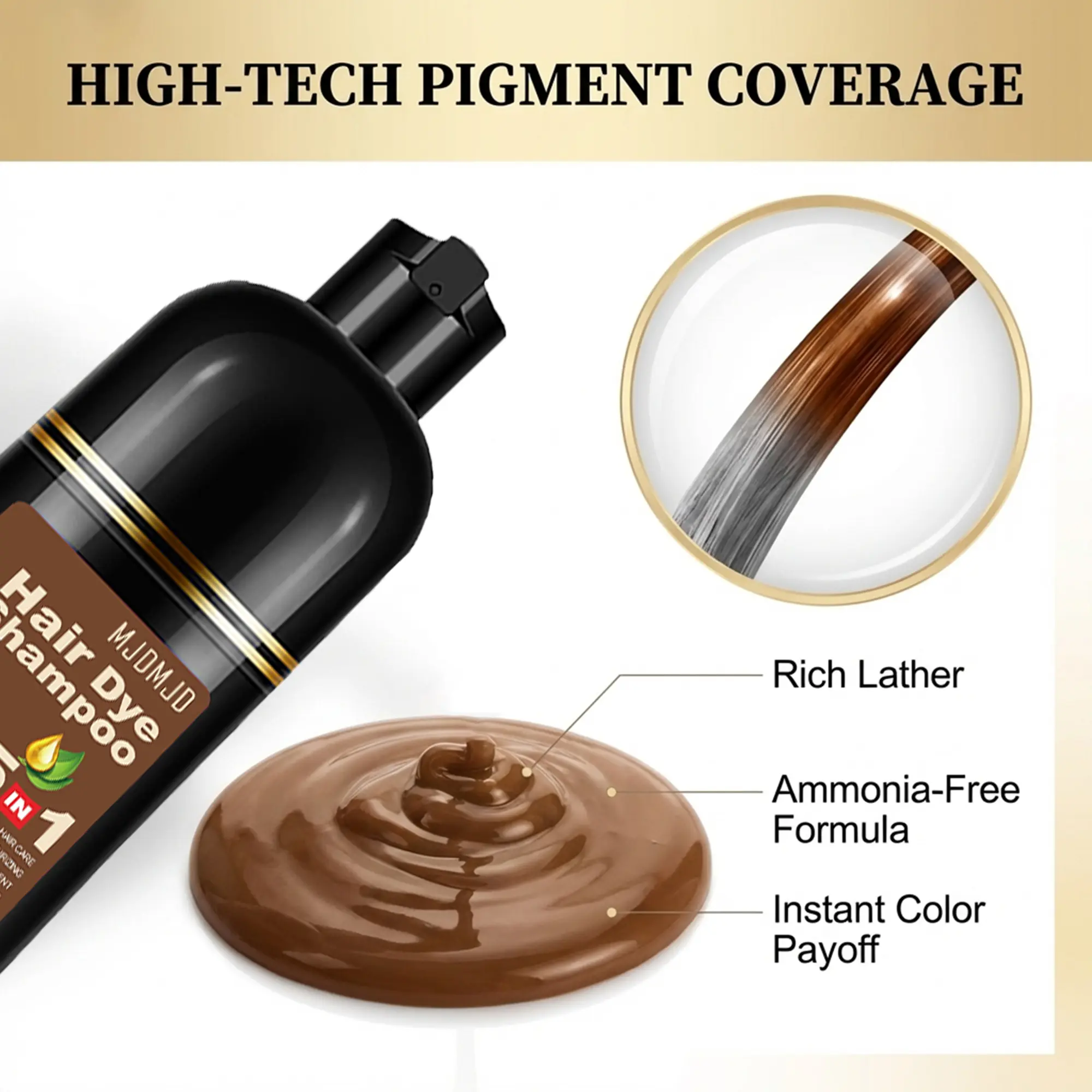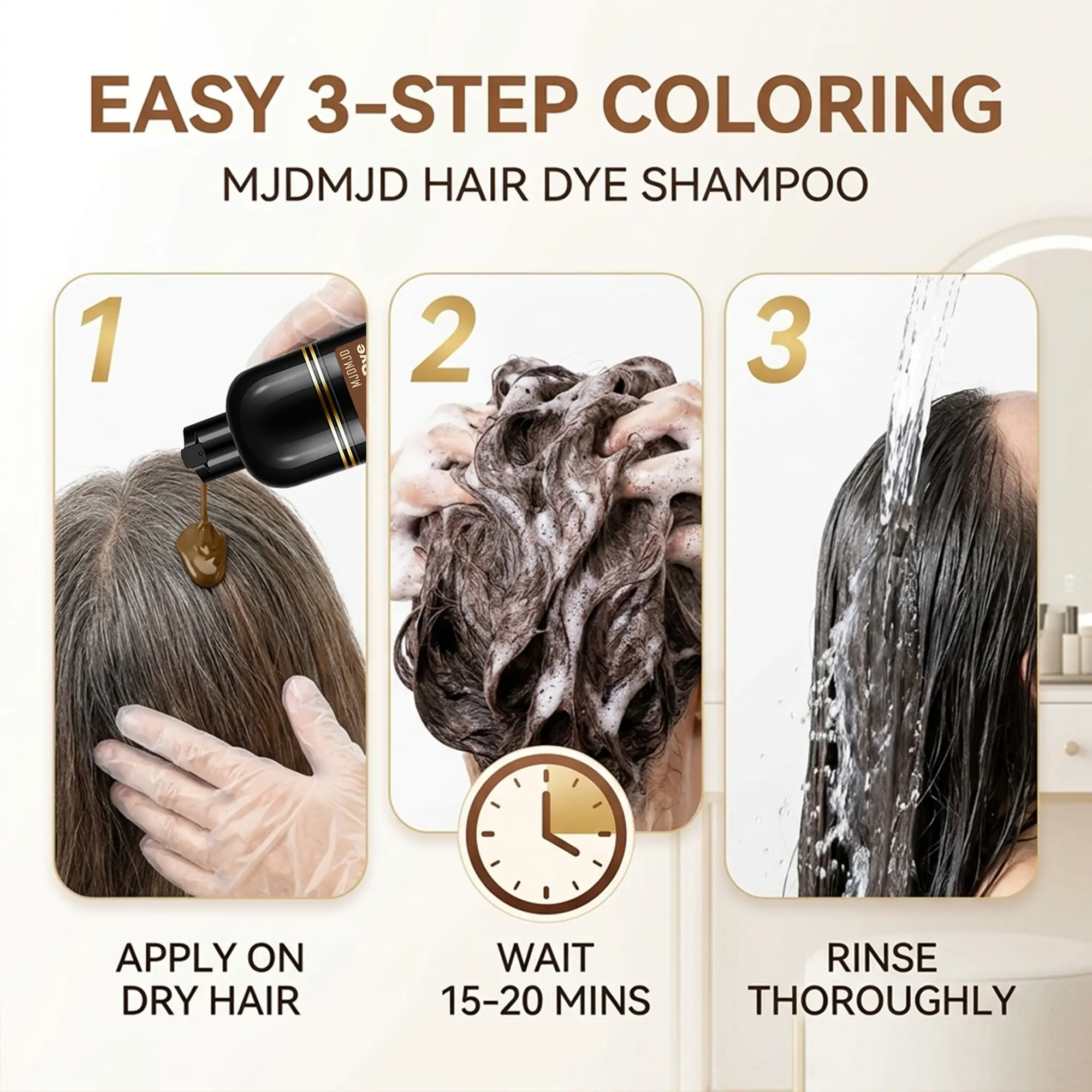 [Fast and Long-lasting Effect]: Our shampoo offers a straightforward and clean application. Just use it like any regular shampoo and within 15-20 minutes, you'll enjoy complete coverage of gray hair without any stains. It’s a quick and effective solution for anyone looking for lasting color with minimal effort.