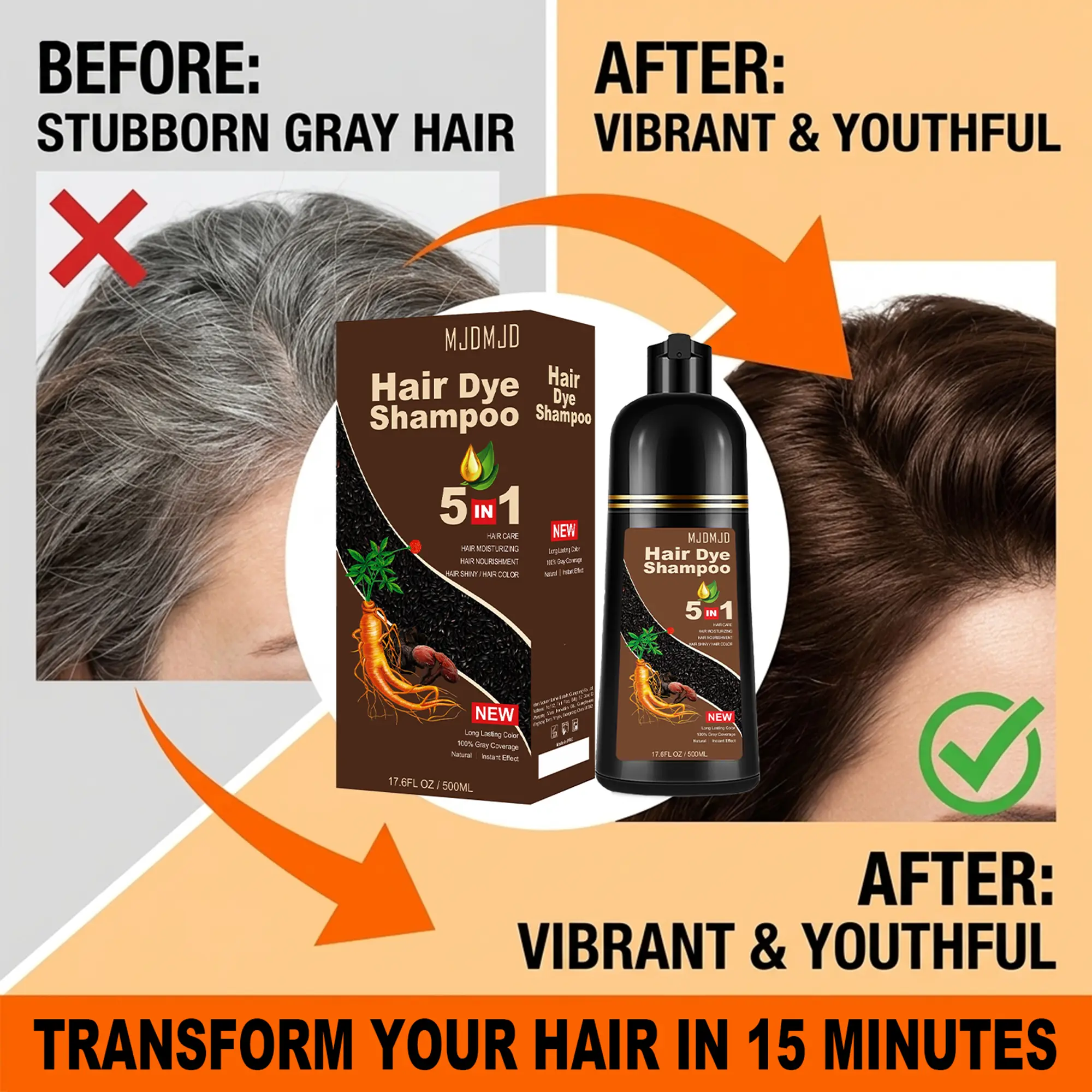 [Effectively Conceals Gray]: Transform your look with our black hair dye shampoo, perfect for covering gray hair. Packed with Natural Nutrition, it doesn't just hide grays but also nourishes and repairs all hair types. Suitable for everyone, this shampoo will leave you looking refreshed and revitalized.