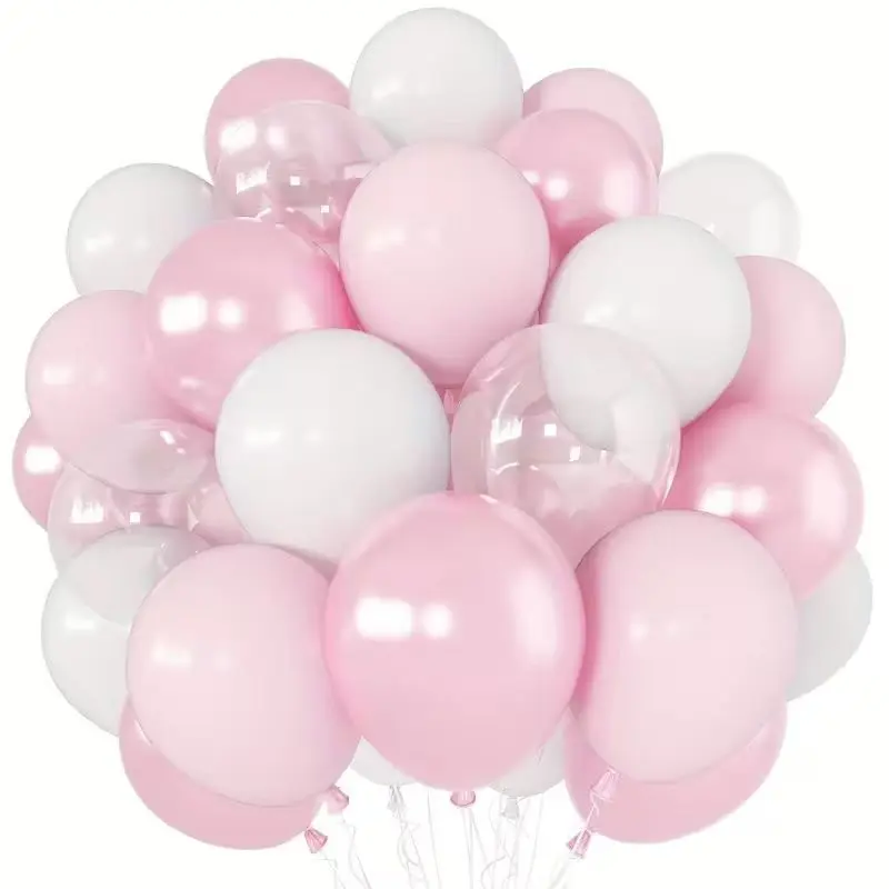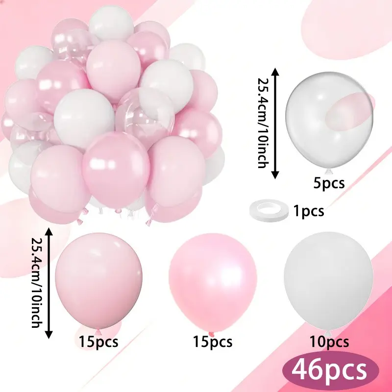 46 piece set of pink balloon combinations, including matte white, maca powder, pearl powder, and transparent latex balloons, suitable for birthday parties, wedding decorations, bridal farewell parties, and anniversary celebrations