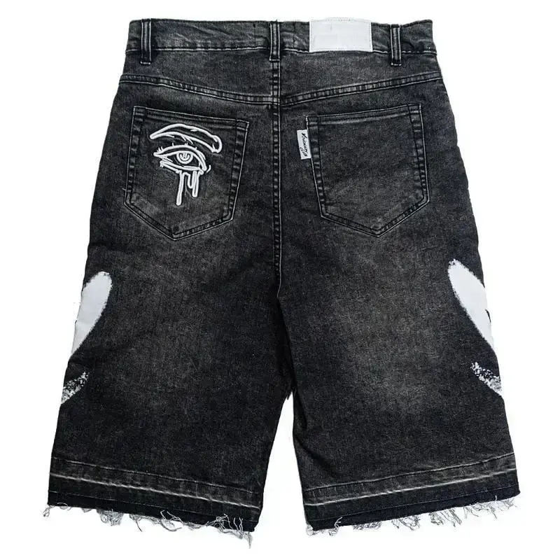 Harajuku new letter embroidered black jeans men's hip-hop retro loose shorts men's casual sports denim shorts street wear men's wet clothes pattern shorts long pants tropical pants motorcycle off-road pantsRAIMENTRY