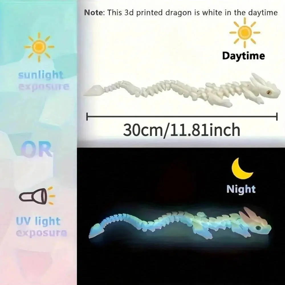 5. 3D Printed Crystal Dragon Statue with Night Glow Rainbow Light and Fluorescent Scales, Multi-Jointed Moving Body, Durable Plastic Figurine
