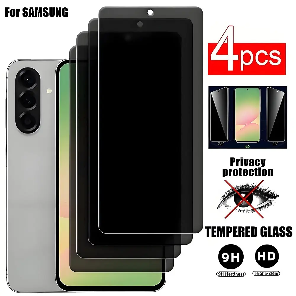 4 Pcs Privacy Screen Protector Suitable for Samsung Galaxy S25 FE A14 A15 A16 A17 A24 A25 A26 A27 A34 A35 A36 A37 A51 A52 A52s A53 A54 A55 A56 A57 Privacy Protection Tempered Glass Easy install Full Cover Anti Scratch 9H Glass
