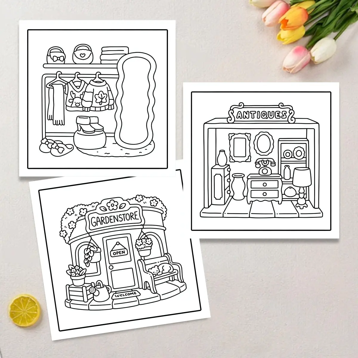 Mother Day Gift Little Corner Super Cute Spiral Binding Coloring Book for Adults and Teens with Cozy Hygge Spaces for Relaxation.