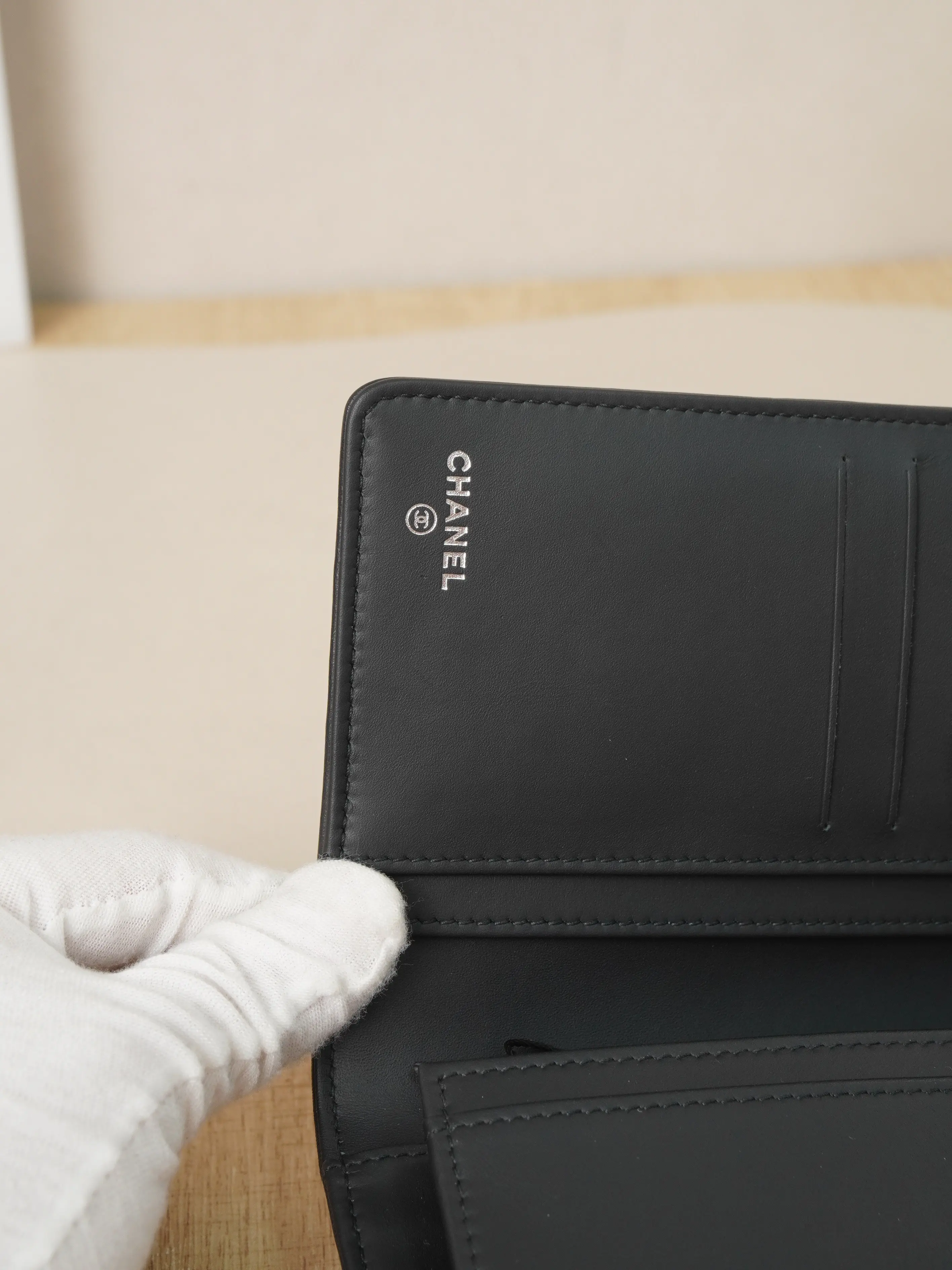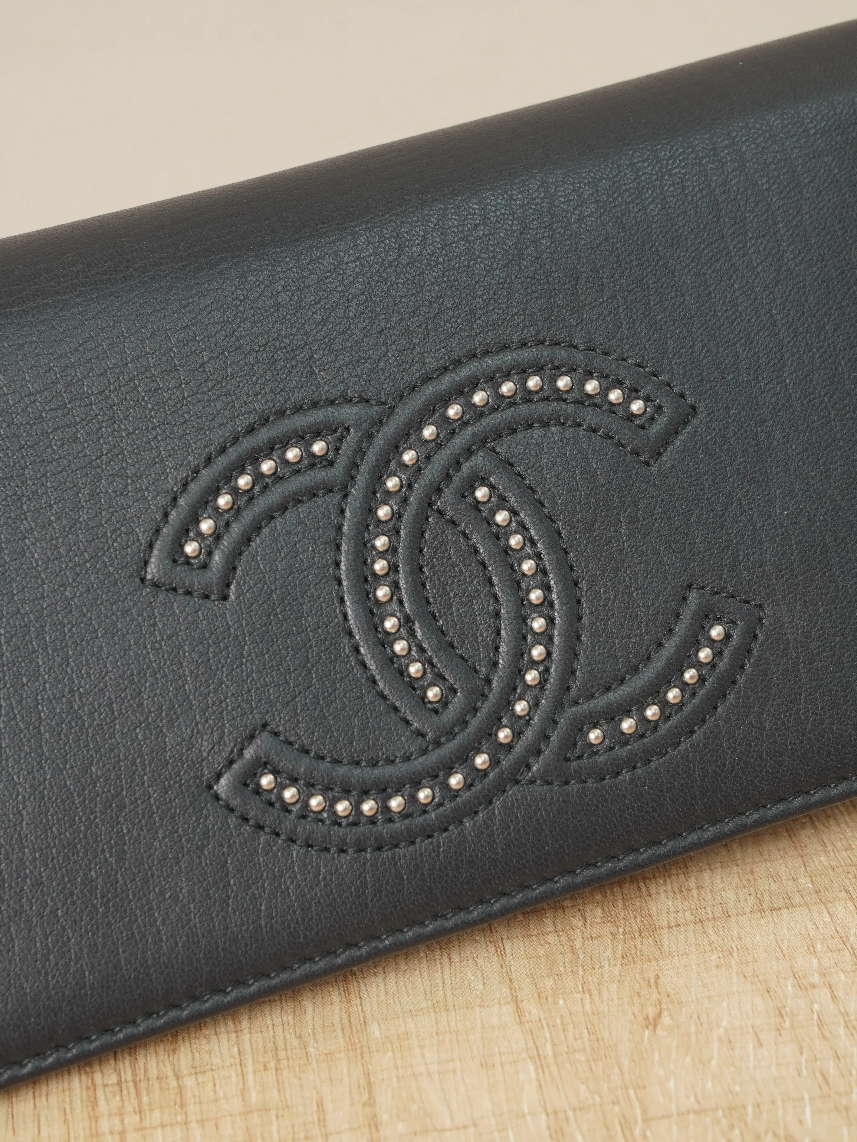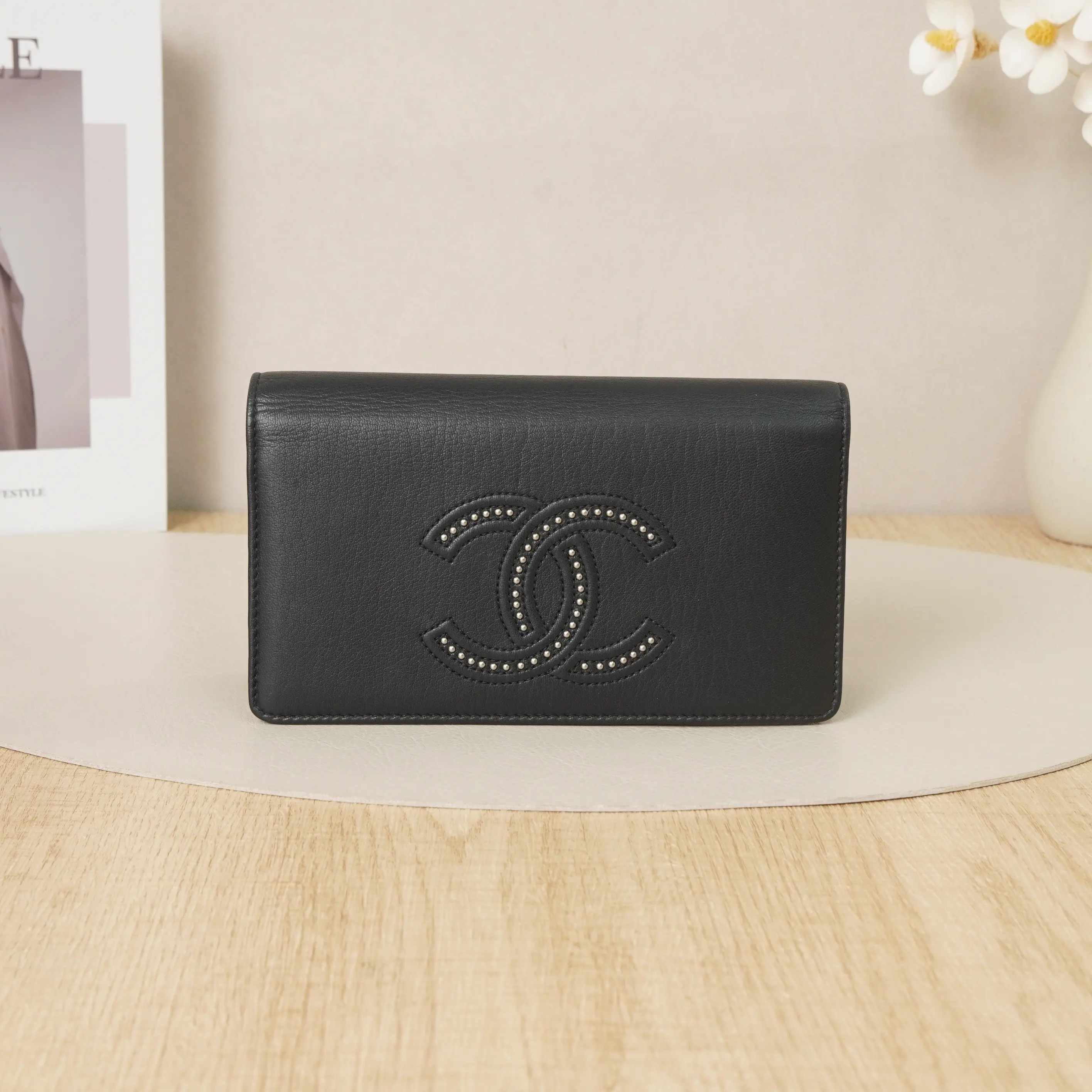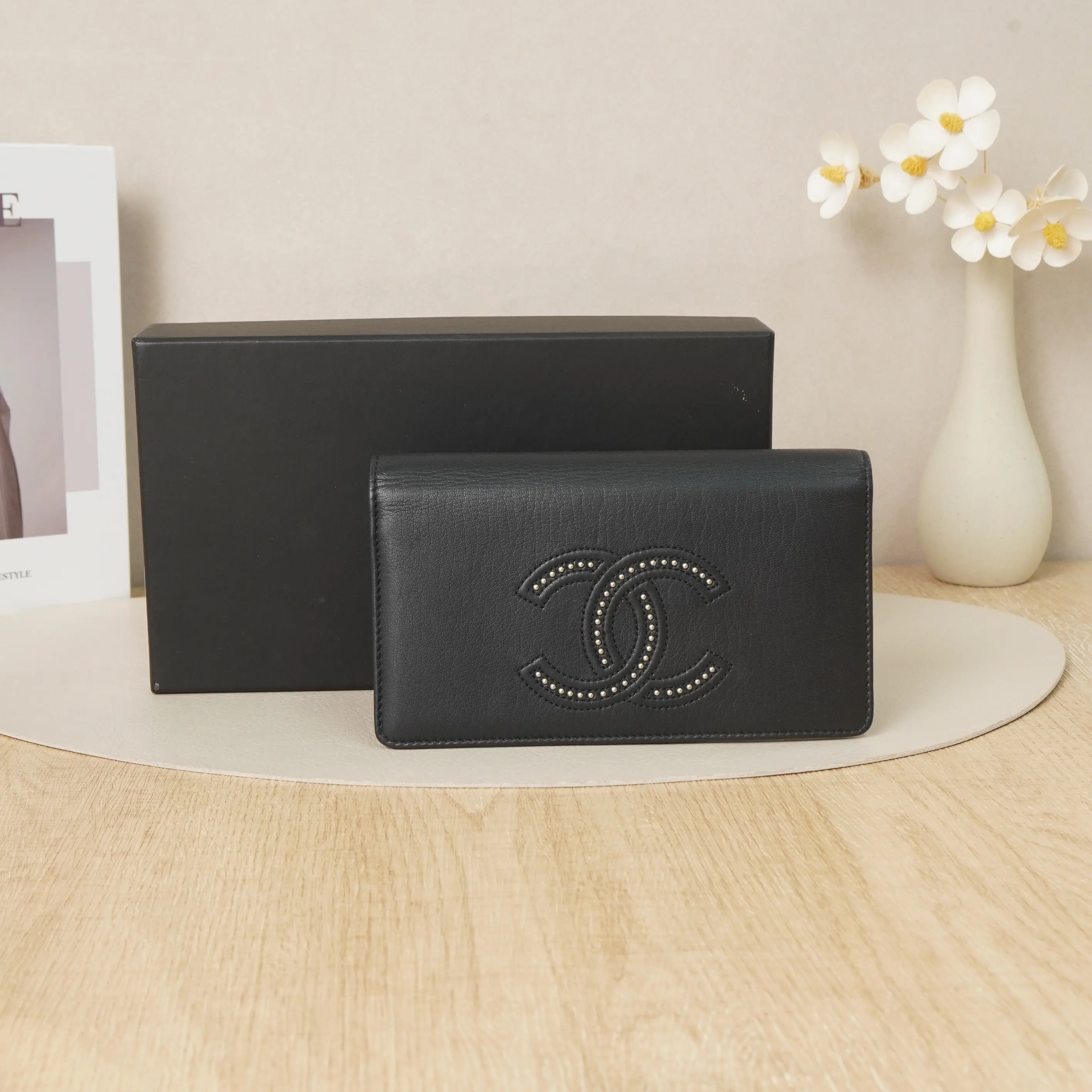 ·Design: Signature interlocking CC logo with studded detailing, multi-compartment interior with card slots and zippered pocket.