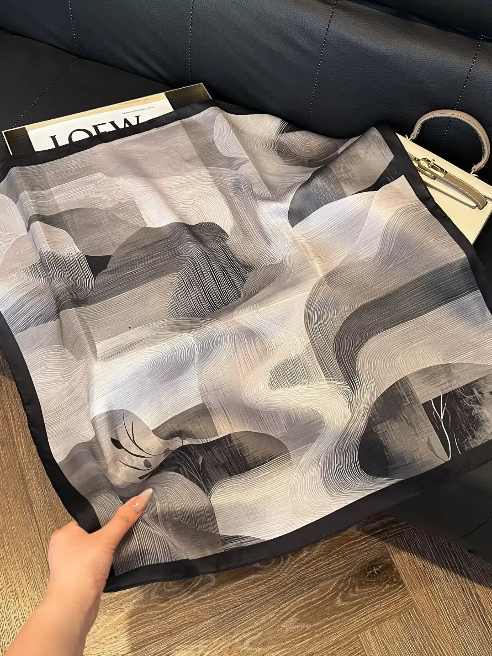 From soft, watercolor-inspired camo blurs in warm neutrals, to bold, graphic floral motifs in fiery red and gold, to serene ink-wash mountain landscapes in monochrome and vibrant pink, every design is a wearable work of art. Lightweight, breathable, and endlessly versatile, these scarves are designed to transform any outfit, from casual street style to sophisticated office wear.