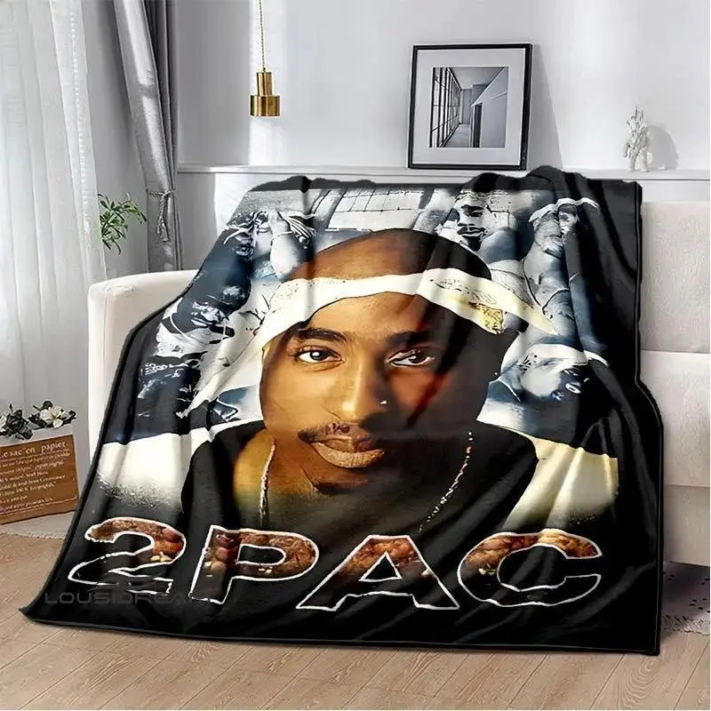 2PAC Hip-Hop Singer Printed Blanket Soft Cozy Leisure Warm Bed Blanket for Couch & Bedroom, Flannel & Fleece rapper Throw Blankets, Cool, Iconic, Trendy, Ideal Gift for Hip-Hop Fans & Music Lovers, Birthday, Holiday