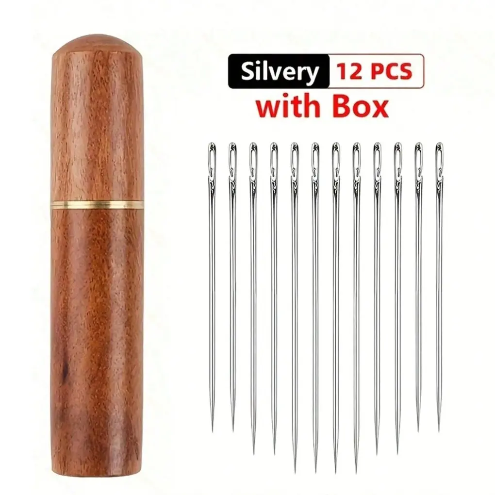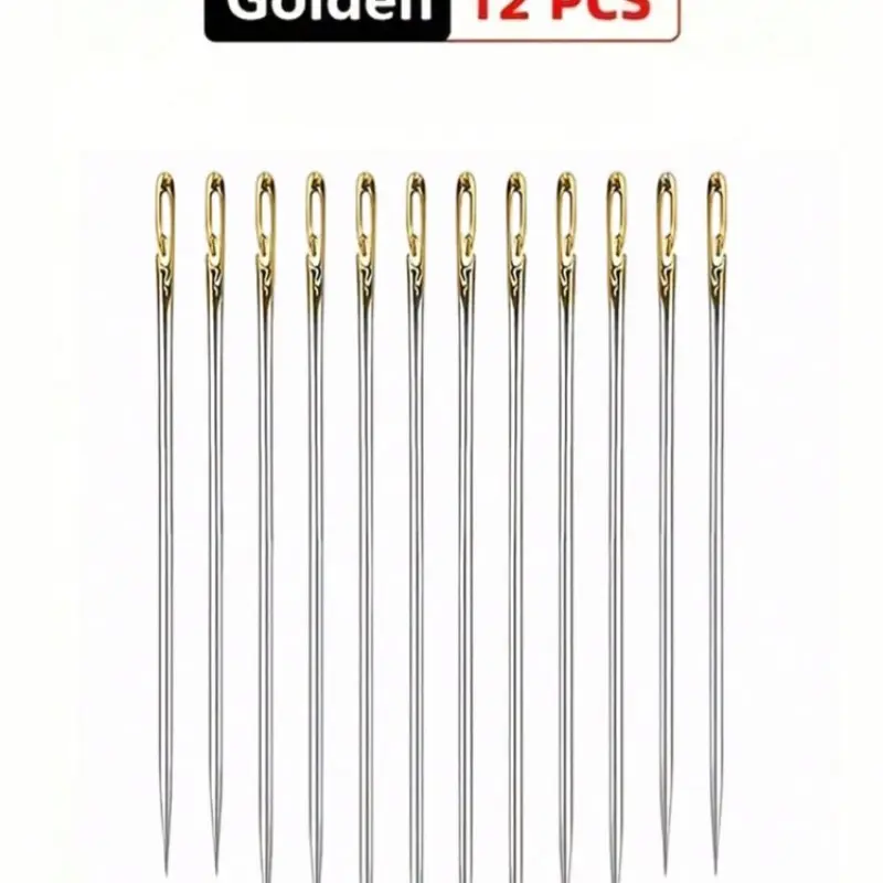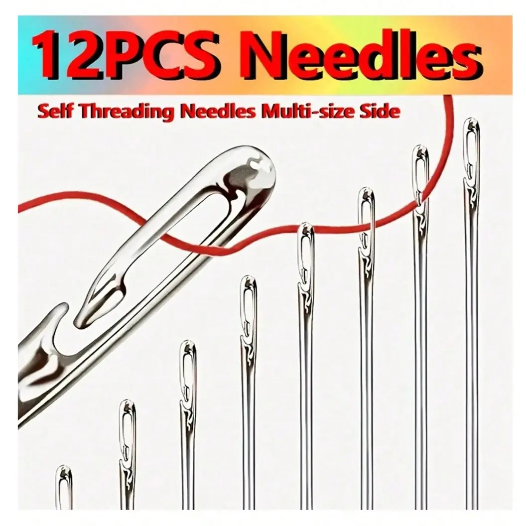 12-Pack Stainless Steel Sewing Needles with Side Holes, Elderly Handmade Sewing Needles, DIY Home Craft Supplies, Tail, Silver Color Tail